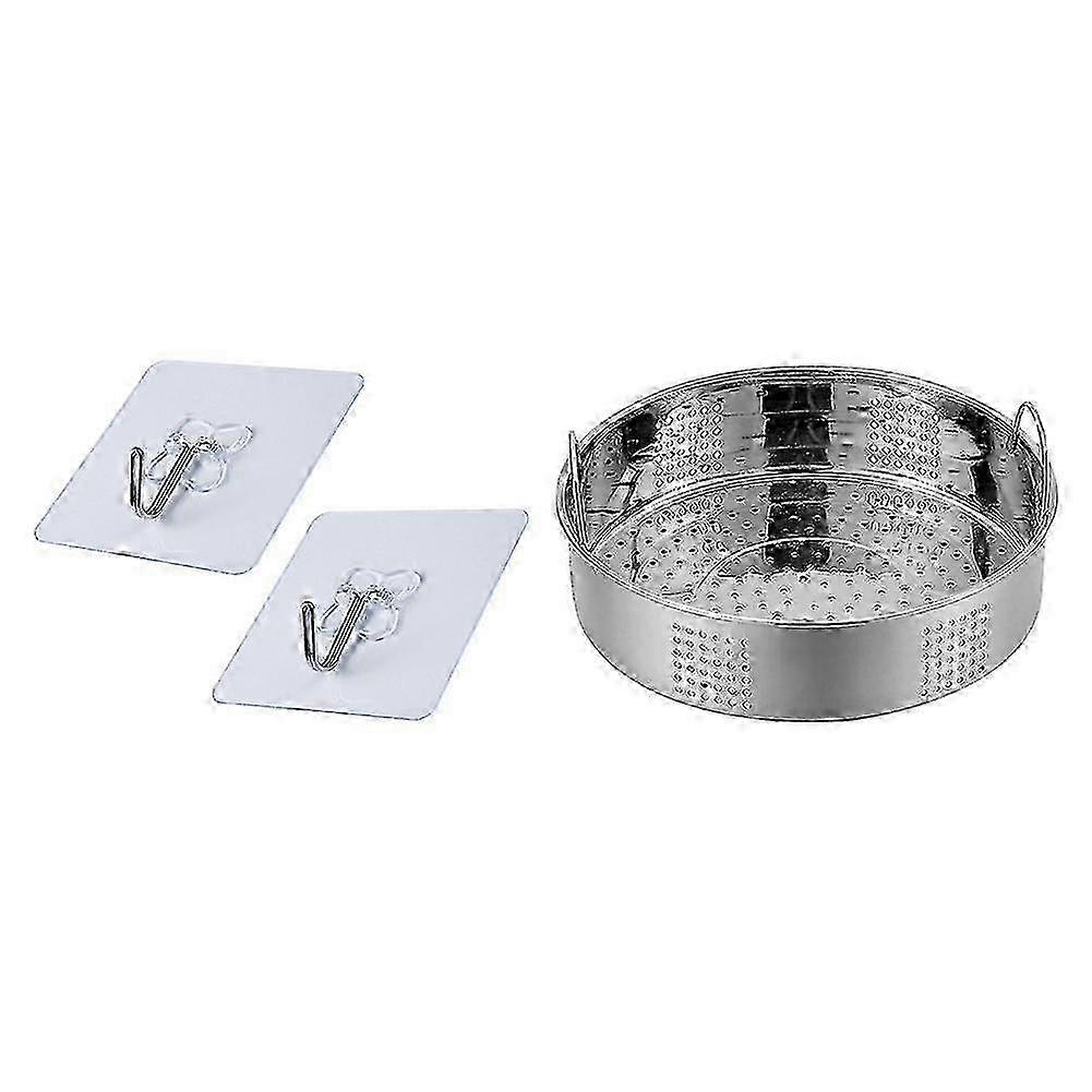 2x Strong Transparent Suction Cup Sucker Wall Hooks & 1x Stainless Steel Steamer Basket Thicken Foo