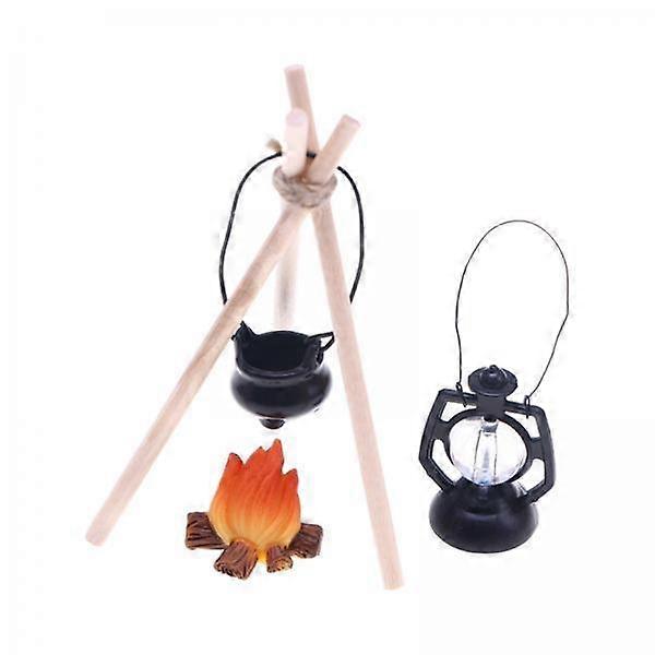 2x1/12 Dollhouse Camp Set Scene Decor DIY Mini Camping Set for Micro Landscape Black lamp set