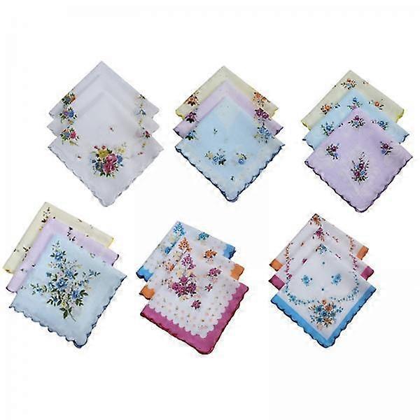2x 18 Pieces Female Cotton Vintage Floral Print Pocket Square Party Embroidered