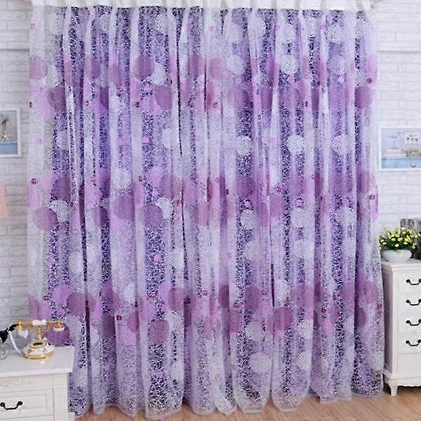 2x200x100cm Bird's Nest Pattern Tulle Door Window Divider Voile Curtain-Purple