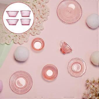 2x4pcs 1/12 Scale Dollhouse Bowls Tiny Model Pretend Play Toy Playset Decor pink
