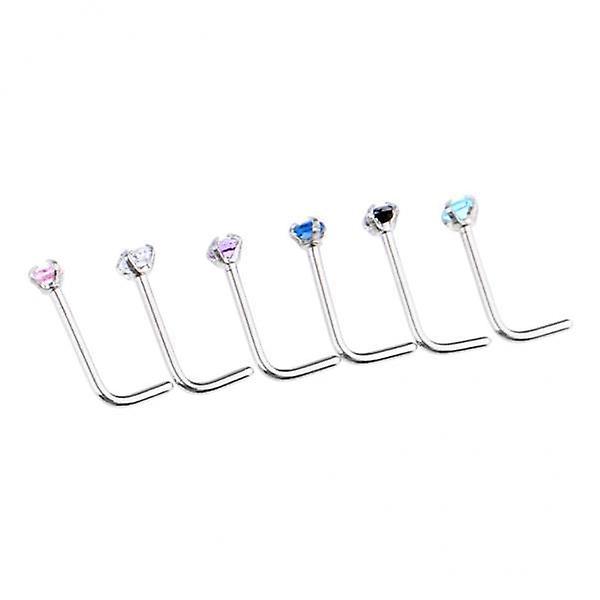 2x6 Pieces Stainless Steel L Shaped Nose Stud Rings Bar Body Piercing 20g