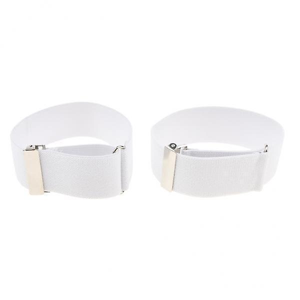 2xAdjustable Anti Slip Elastic Shirt Sleeves Holder Armband Arm Garter Band White