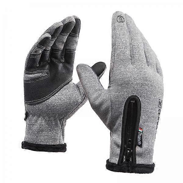 2xWinter Warm Touch Screen Gloves Waterproof Anti Slip Cycling Glove Gray L