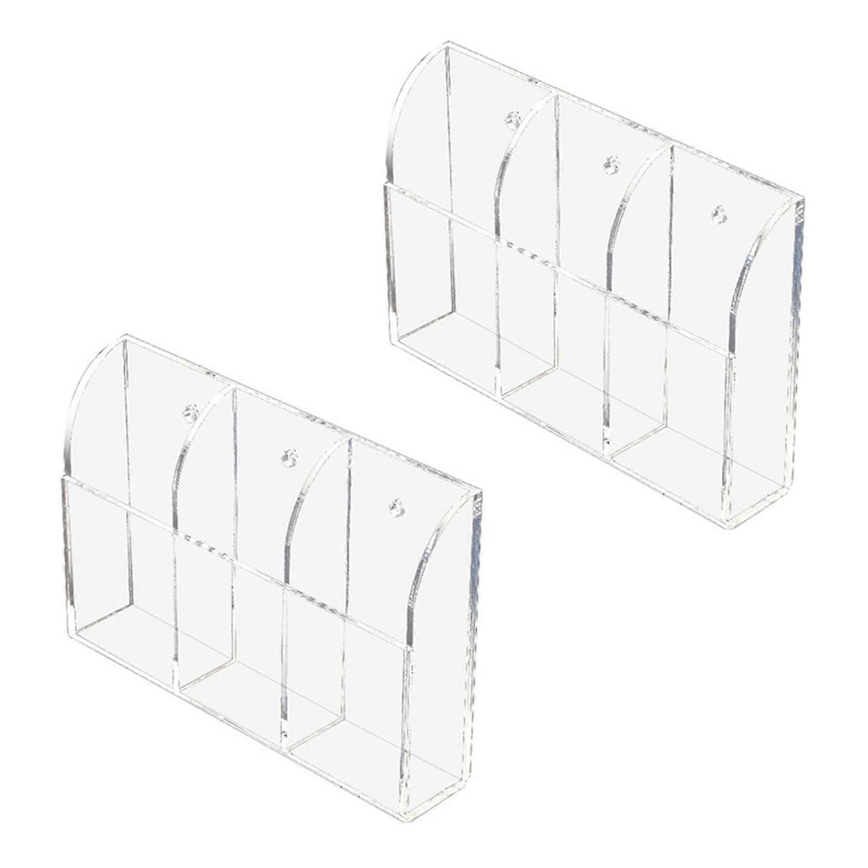 Clear Acrylic Remote Control Holder with Three Compartments: Wall Mount Storage Box for Media Organizer