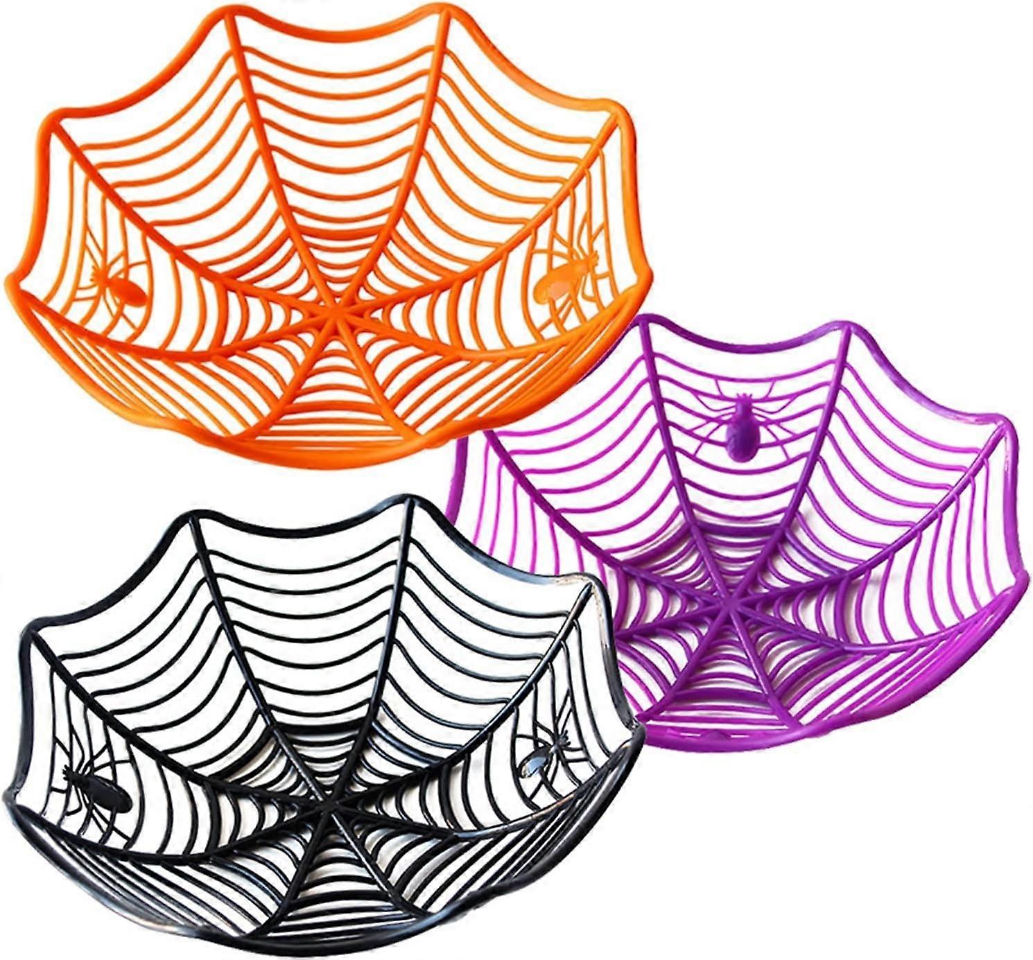 Set Of 3 Plastic Spider Web Bowls, Halloween Fruit Candy Storage Basket, Chocolate Fruit Snack Bowls With Horror Spider Pattern For Halloween Party-8