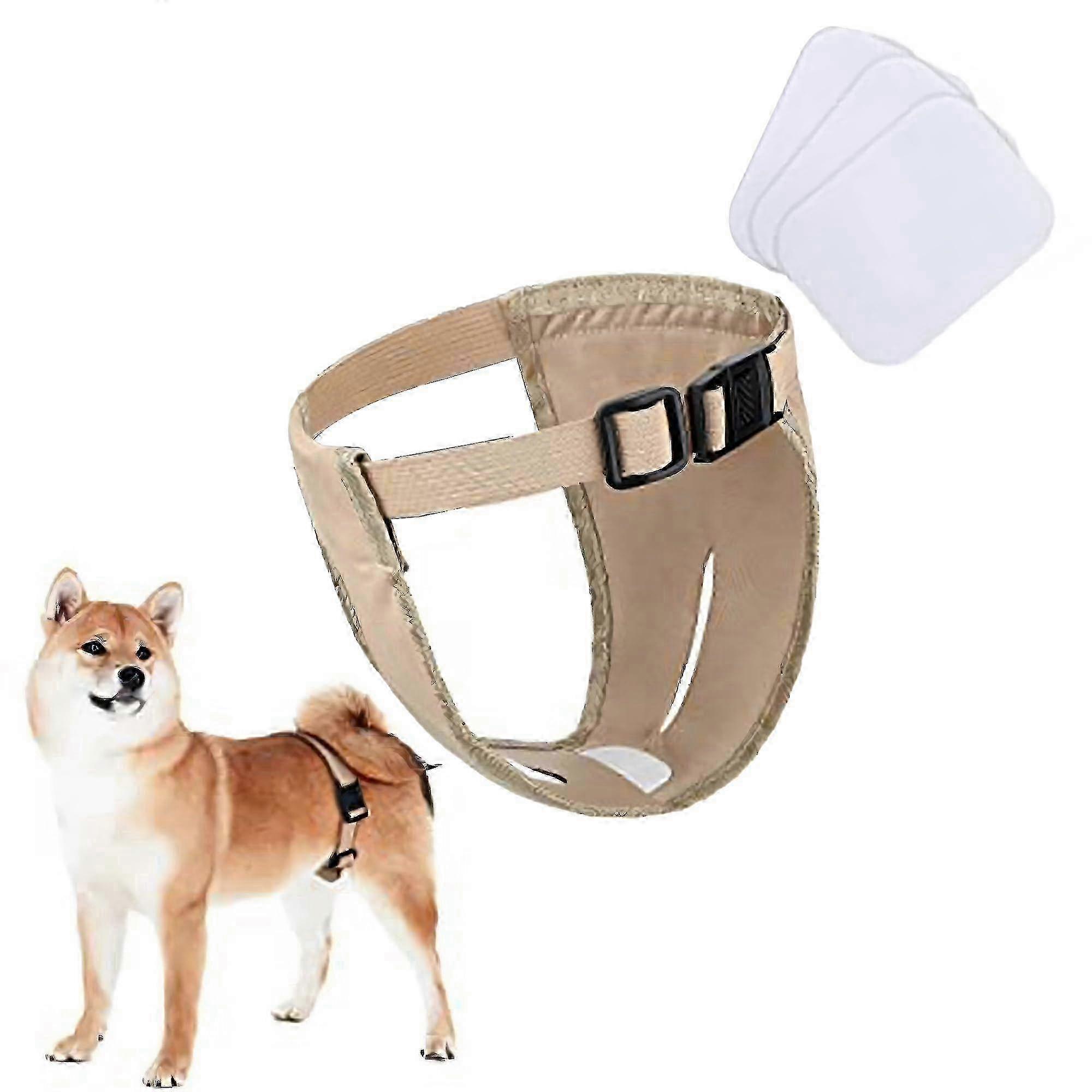 Dog Pants with 3 Replace Diaper, Female Dog Heat Cycle Reusable Dog Diapers for Female in Heat Brown XS