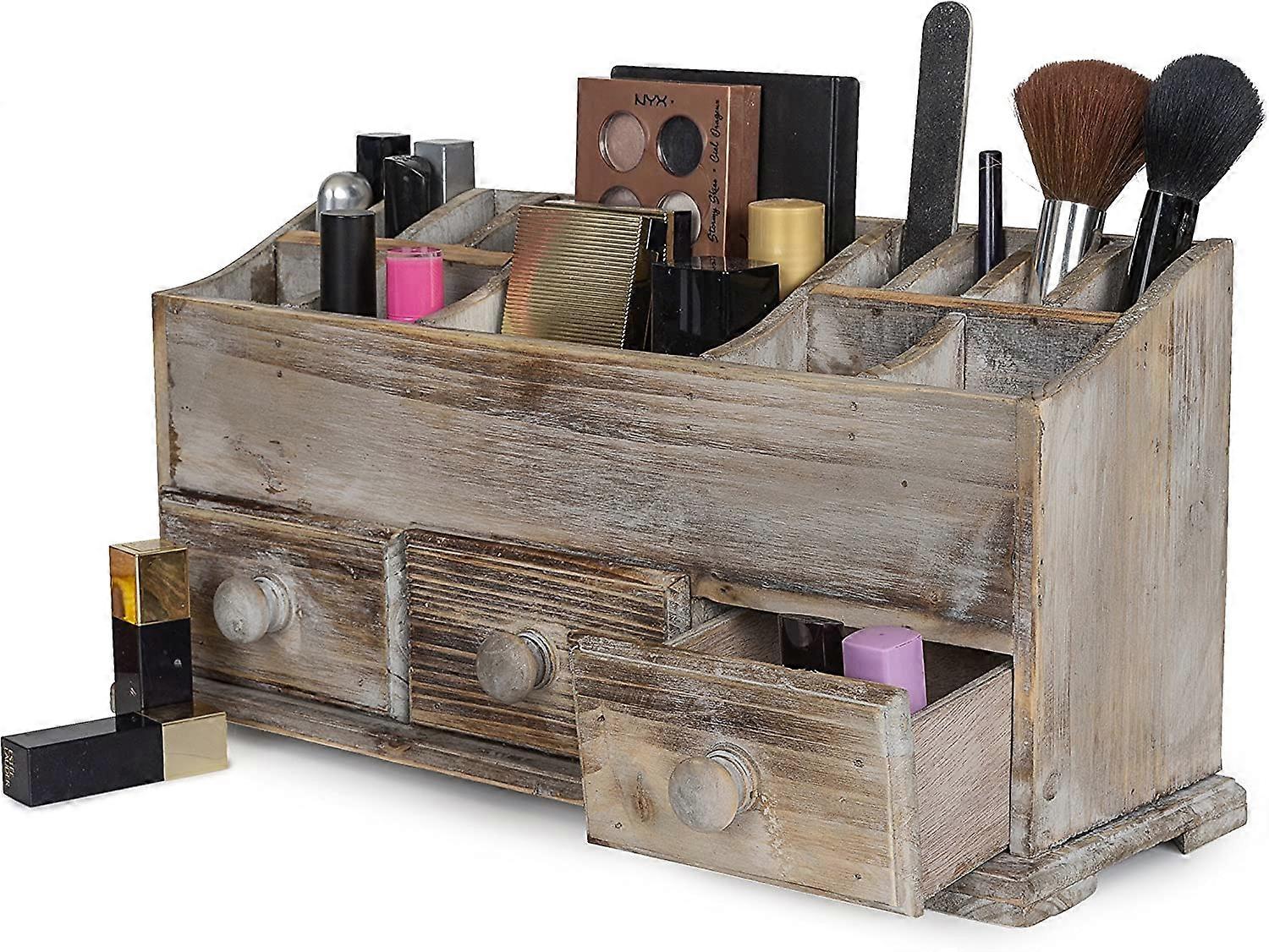 3 Drawers - Wooden Cosmetic Storage Box for Neat & Organize Storing of Makeup Tools, Small Accessories At Home & Office Vanities & Bathroom Counter-to