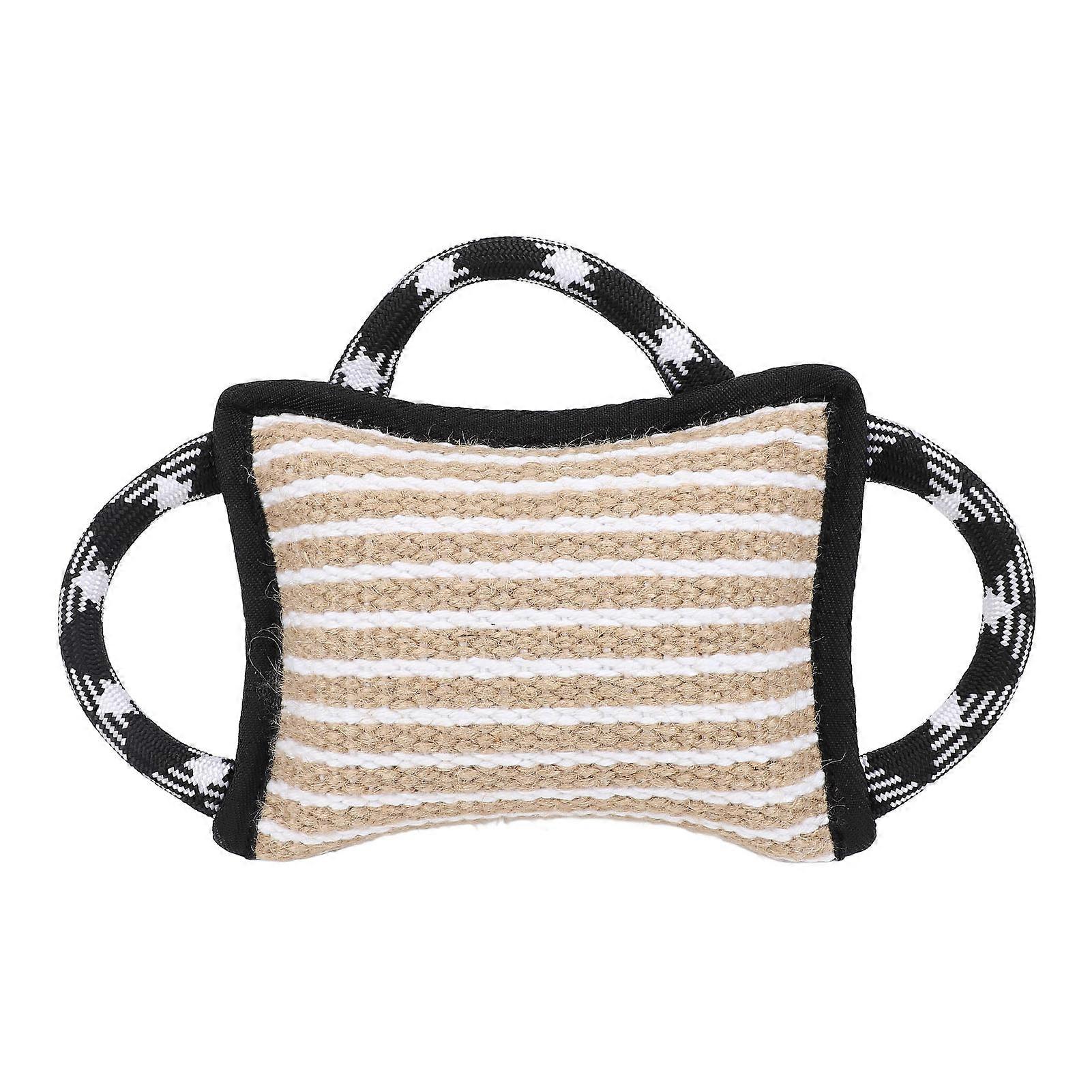 Biting Pad with 3 Strong Handles Jute Tear Resistant Interactive Play Dog Bite Tug Toy for Adult Dog Black