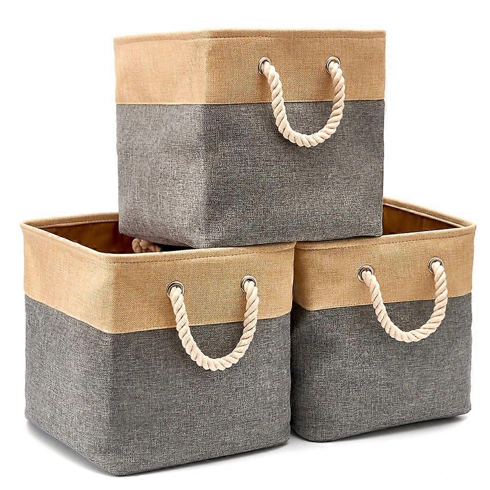 Set of 3 Foldable Cloth Canvas Storage Boxes, Storage Baskets with Handles 33 x 33 x 33 cm, Gray and Beige