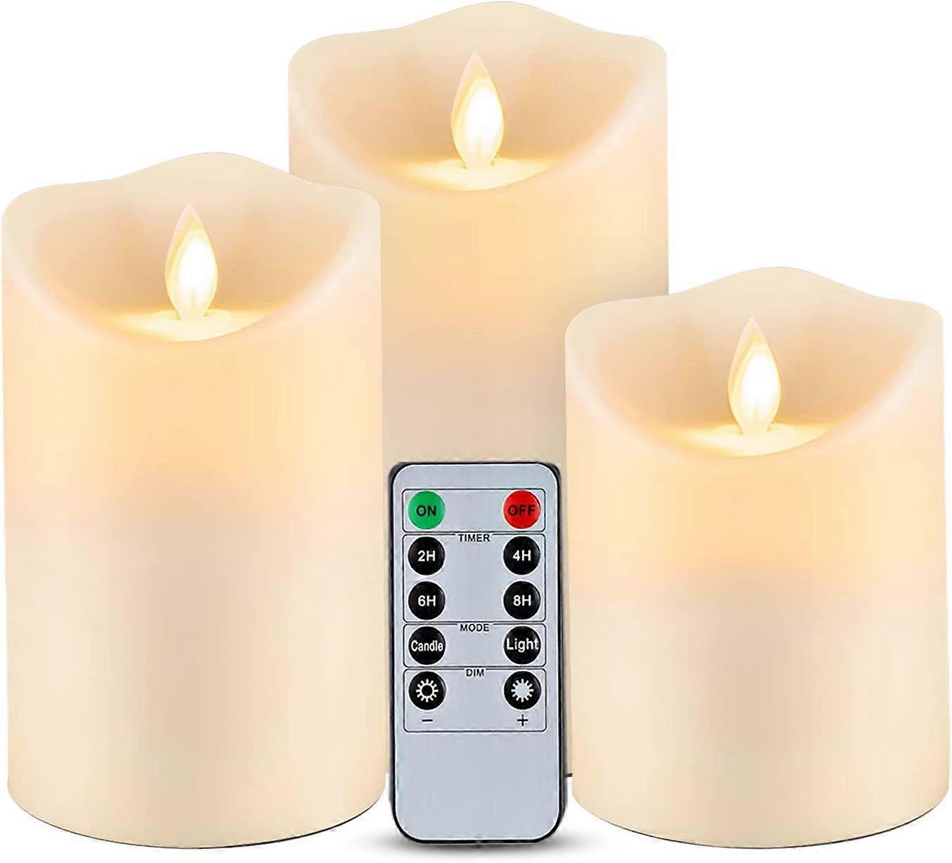 Set of 3 Flickering Flameless Candles - Outdoor/Indoor LED Candles with Remote Timers