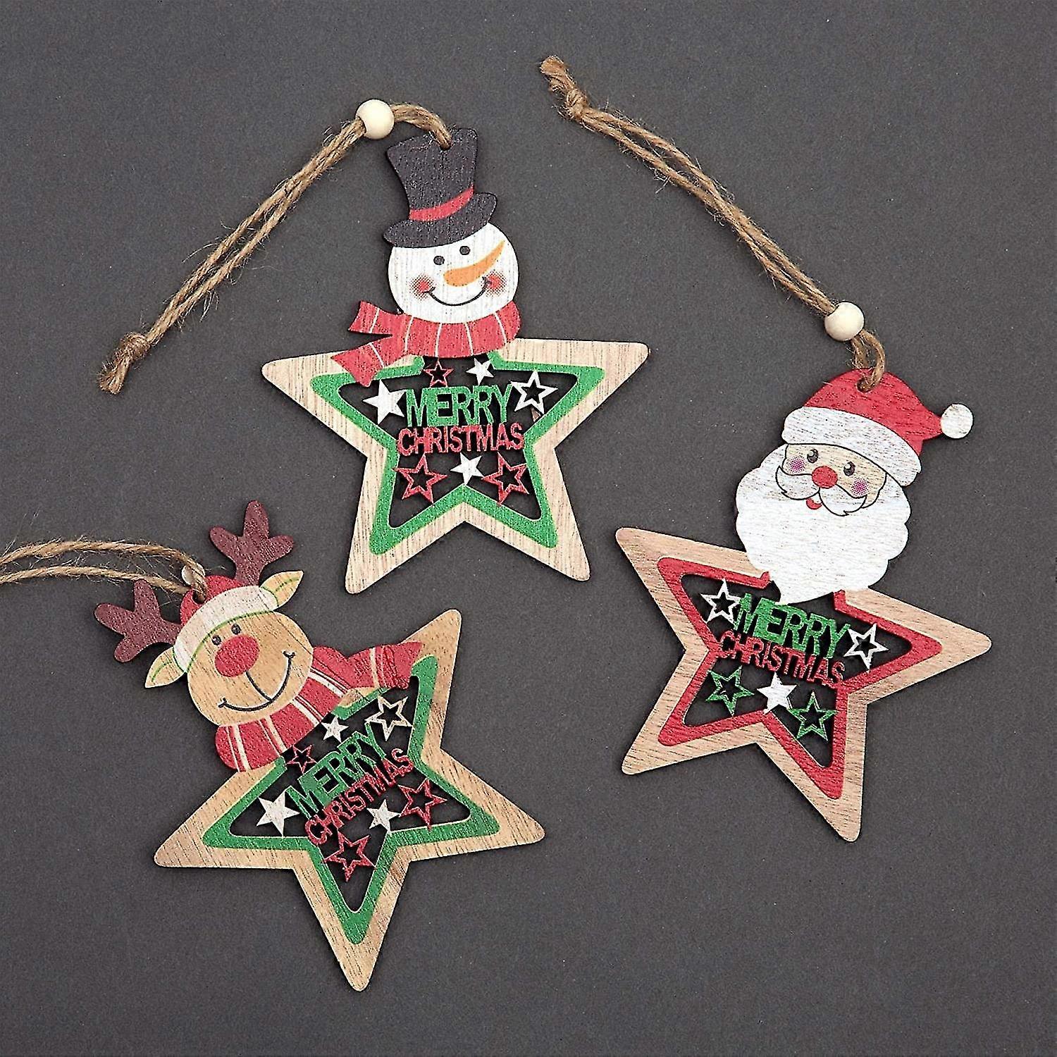 Set Of 3 Wooden Christmas Tree Hanging Decorations - Home Decor - Santa, Reindeer, Snowman - 9cm