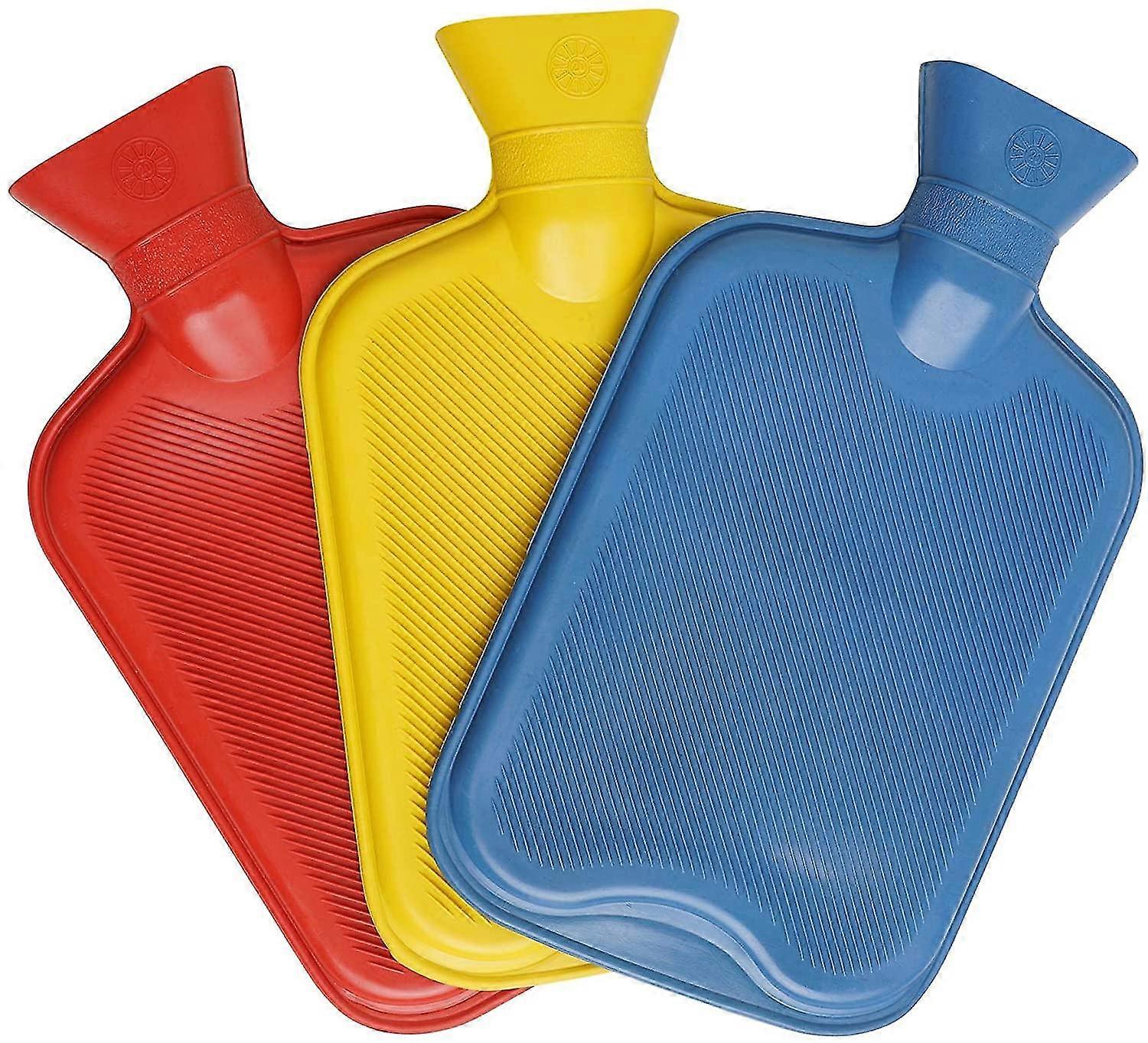 Pack Of 3 Hot Water Bottles - Natural Rubber 2 Litre Capacity - 3 Colours In Pack (red, Yellow And Blue)