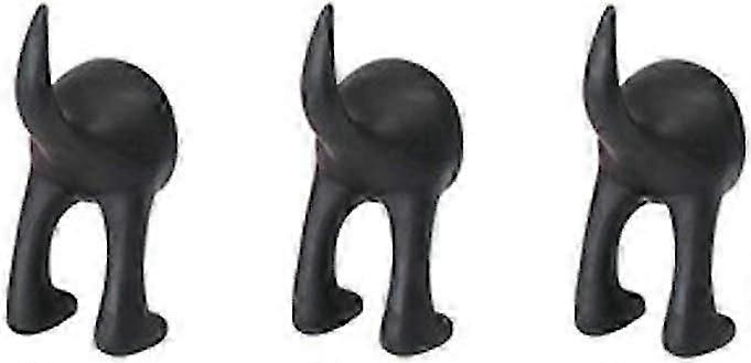 Set of 3 Dog Tail Decorative Creative Hooks Hat Coat Key Wall Mounted Hanger for Hanging Scarves Bags Purses Backpacks (Black)