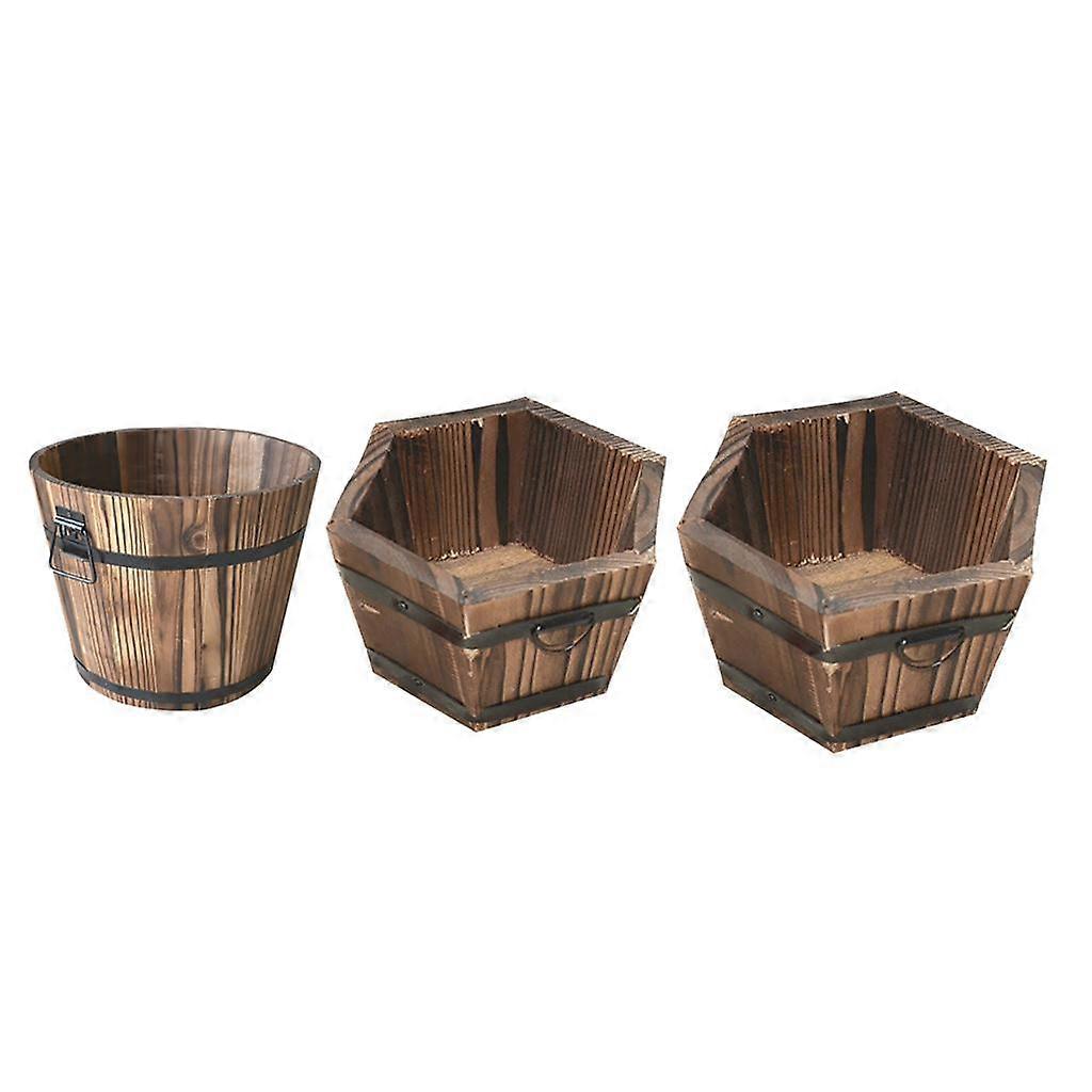 Set of 3 Rustic Wooden Flower Pots Garden Planter Art Window Box