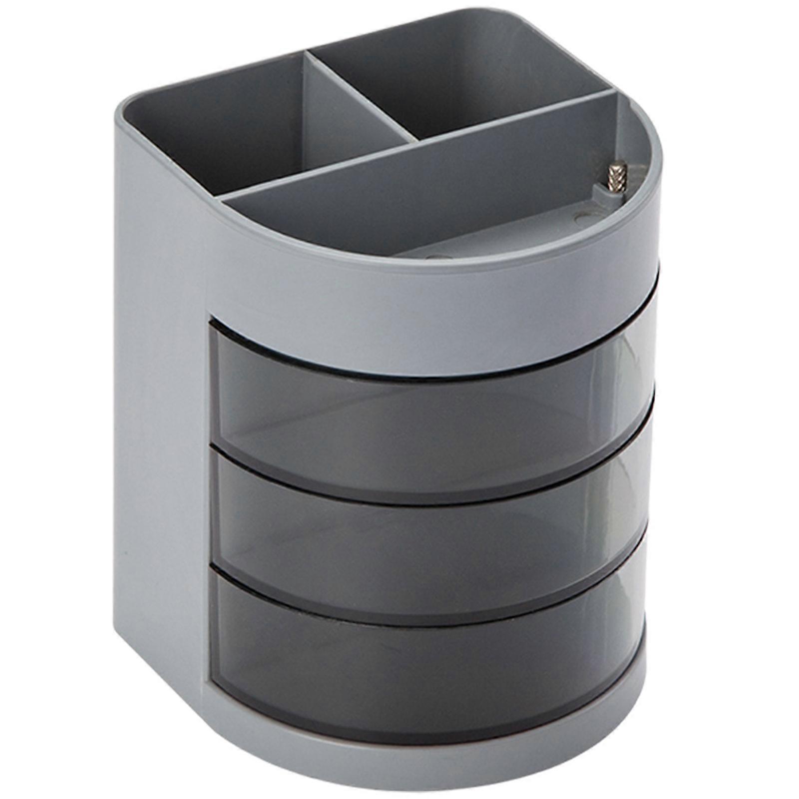 Multipurpose Pen Organizers with 3 Clear Rotating Drawer, Easy Access Space Saving Pencil Holder Office Desk Organizers Grey