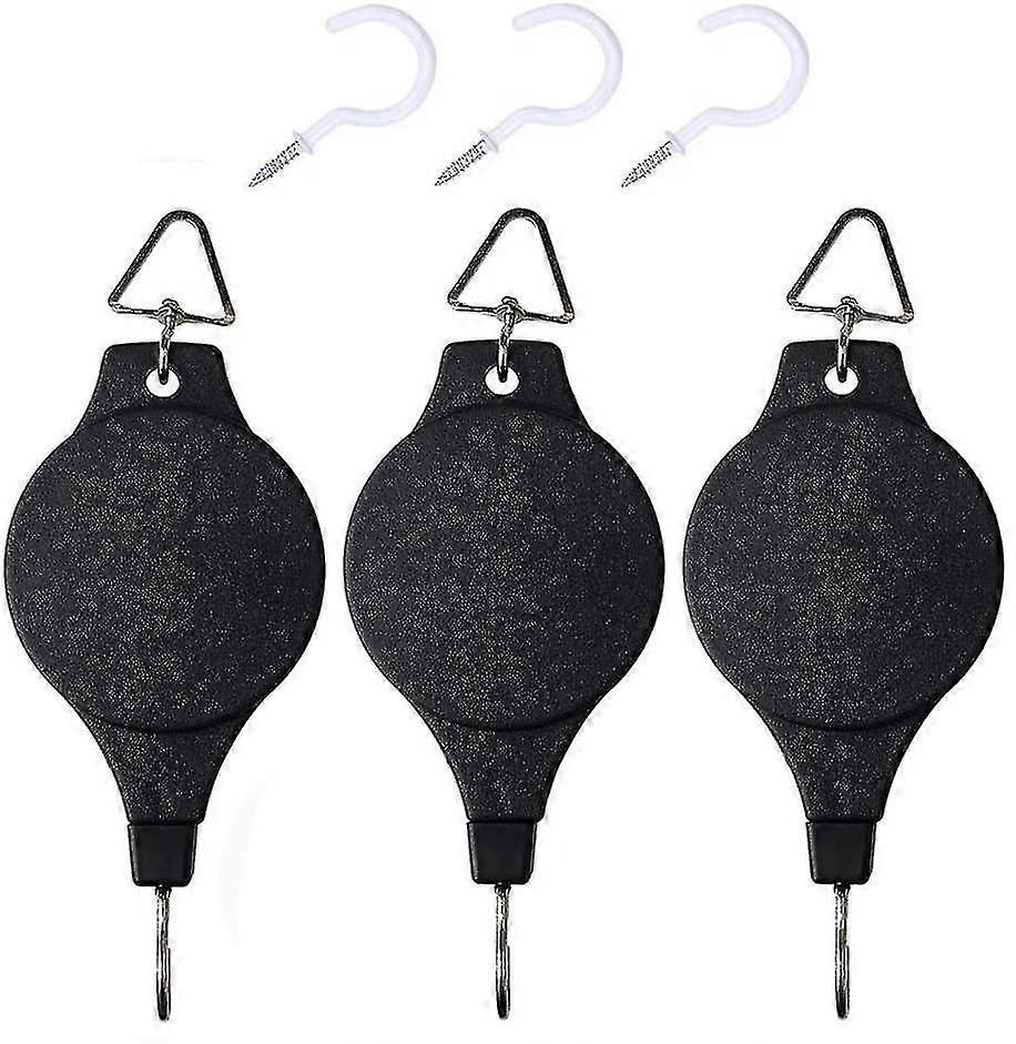 3 Pcs Hanging Basket Pulley, Heavy Duty Plant Pulley Hook With 3 Pcs White Ceiling Hooks Retractable Plant Hanger For Garden Hanging Baskets And Birds