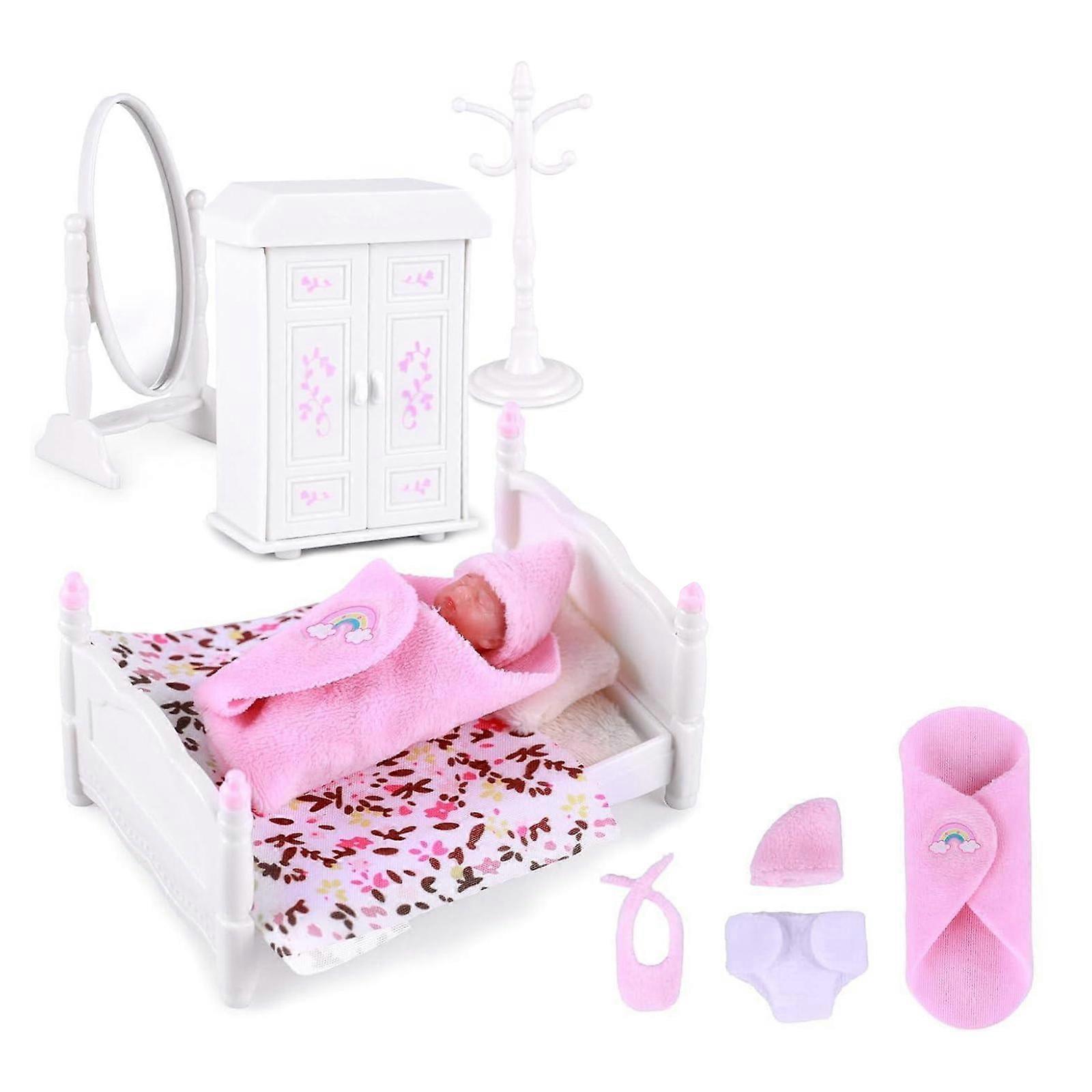 3inch Realistic Miniature Silicone Baby Doll Sleeping Infant Doll with Furniture Accessories Great for Children Fun
