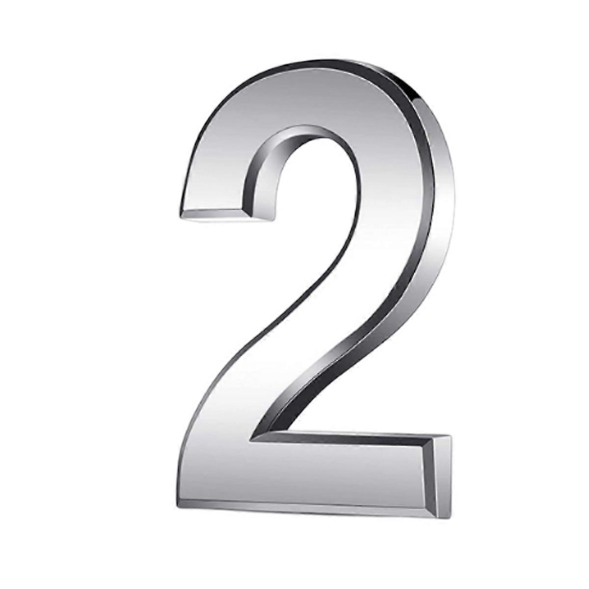 3 Inch 3D Mailbox Numbers, Self Adhesive Waterproof House Numbers, DIY Address Numbers Sign, Number Stickers for Apartment, Home, Office, Hotel, Door, Room (Silver, Number 2)