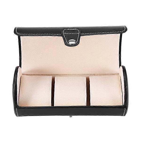 3-compartment cylindrical watch roll holder, wristwatch display case, jewelry gift storage box (black)