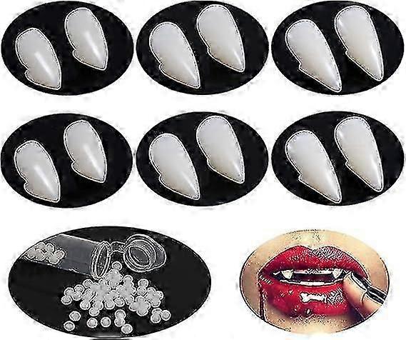 6 Pairs Of 3 Size Cosplay Vampire Fangs With Adhesive Halloween Party Prop Decoration Fake Vampire Teeth For Kids/adults