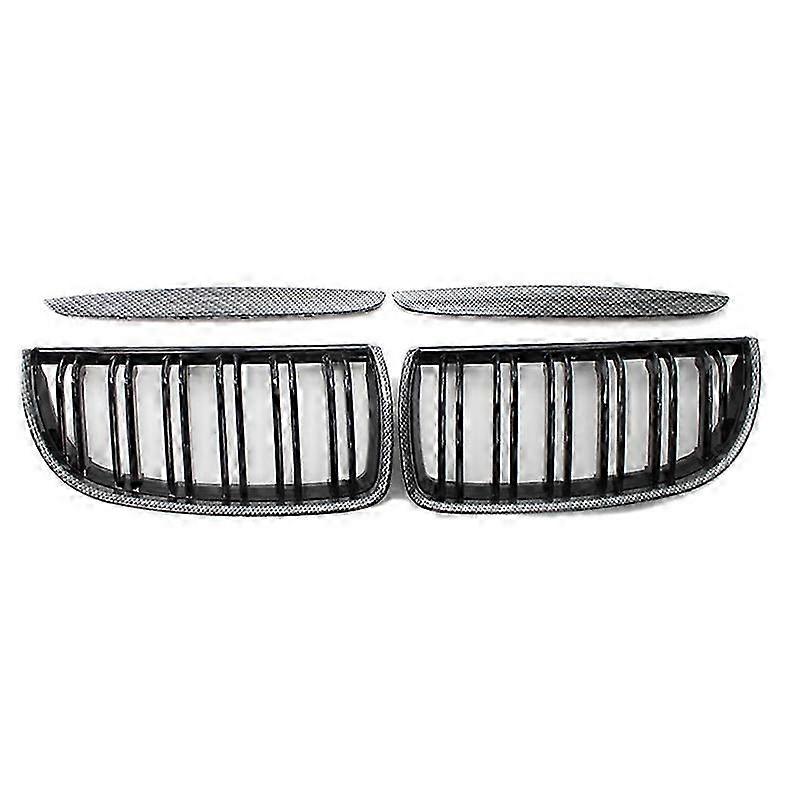 Car Carbon Fiber Look Front Kidney Grille Dual Slats for 3 Series E90 E91 2005-2008