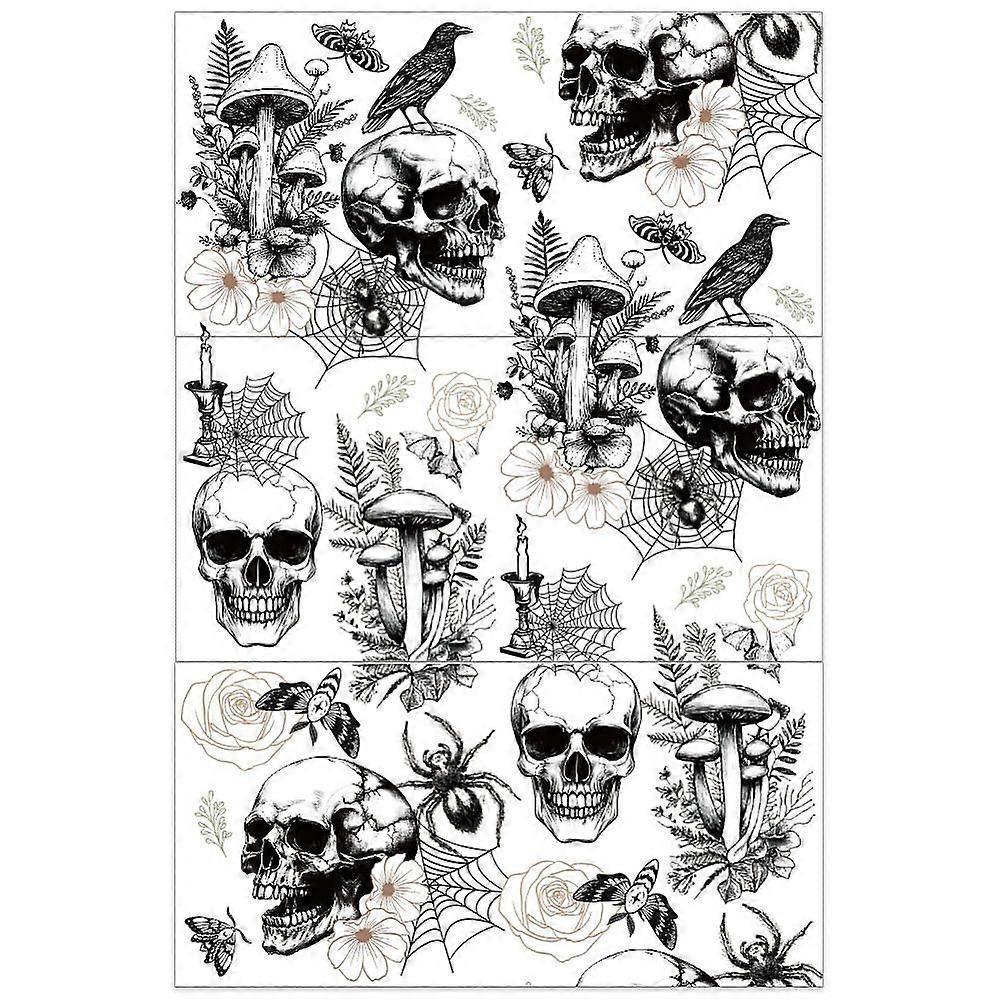 3 Sheets 3 Styles PVC Waterproof Decorative Stickers Self Adhesive Decals for Furniture Decoration Skull 300x150mm 1 sheet/style