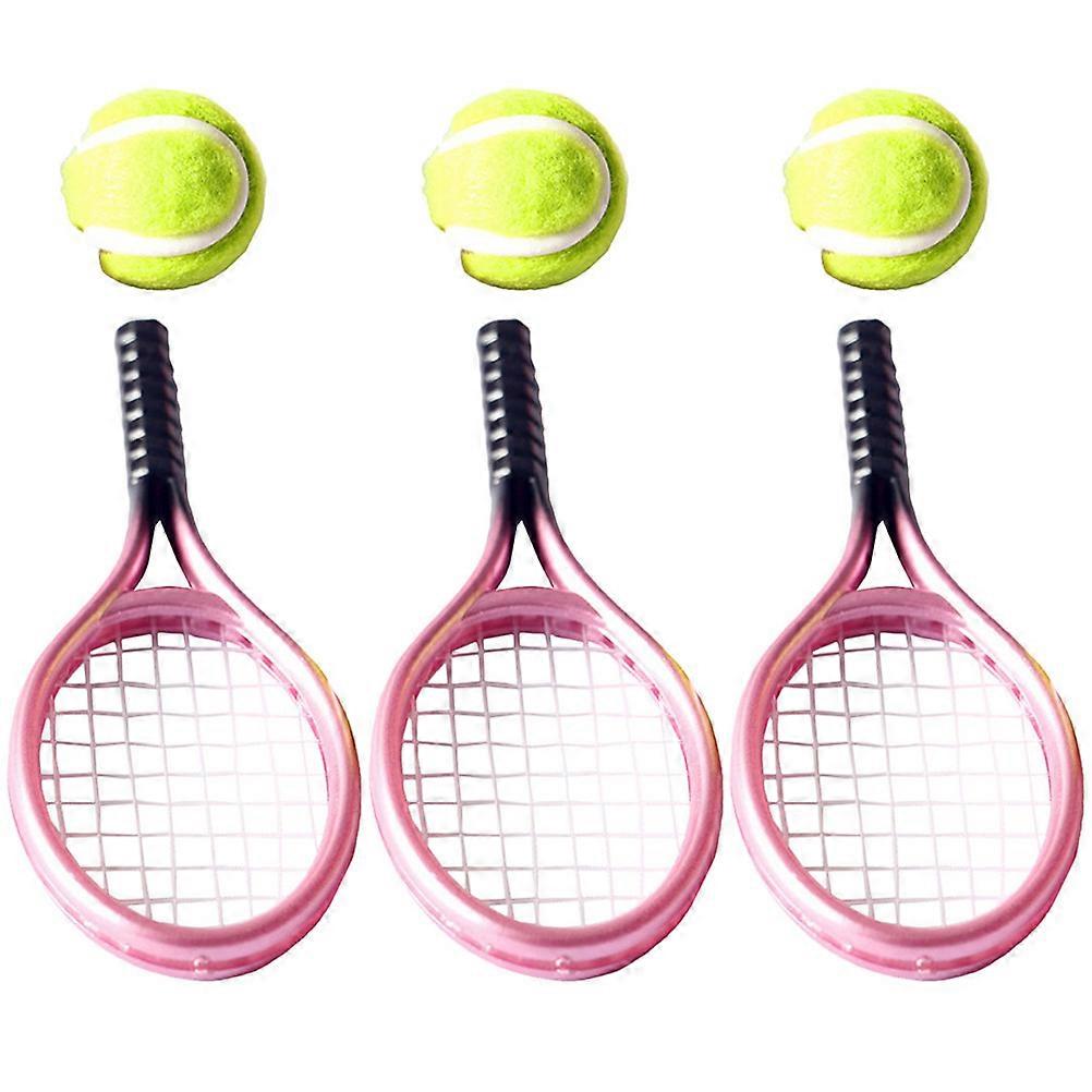 3 Sets Mini House Tennis Set Miniature Tennis Racket Mini Tennis Ball Photography Props