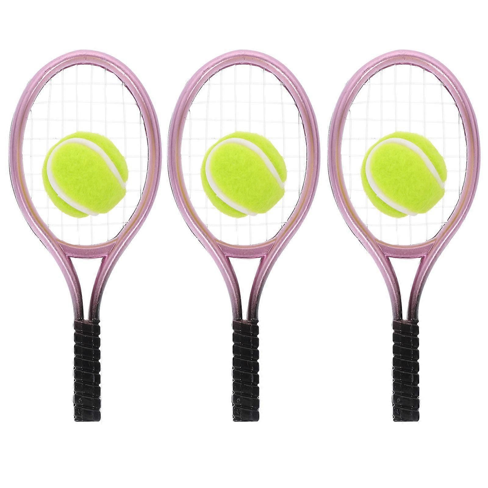 3 Sets Mini House Tennis Set Miniature Tennis Racket Mini Tennis Ball Photography Props