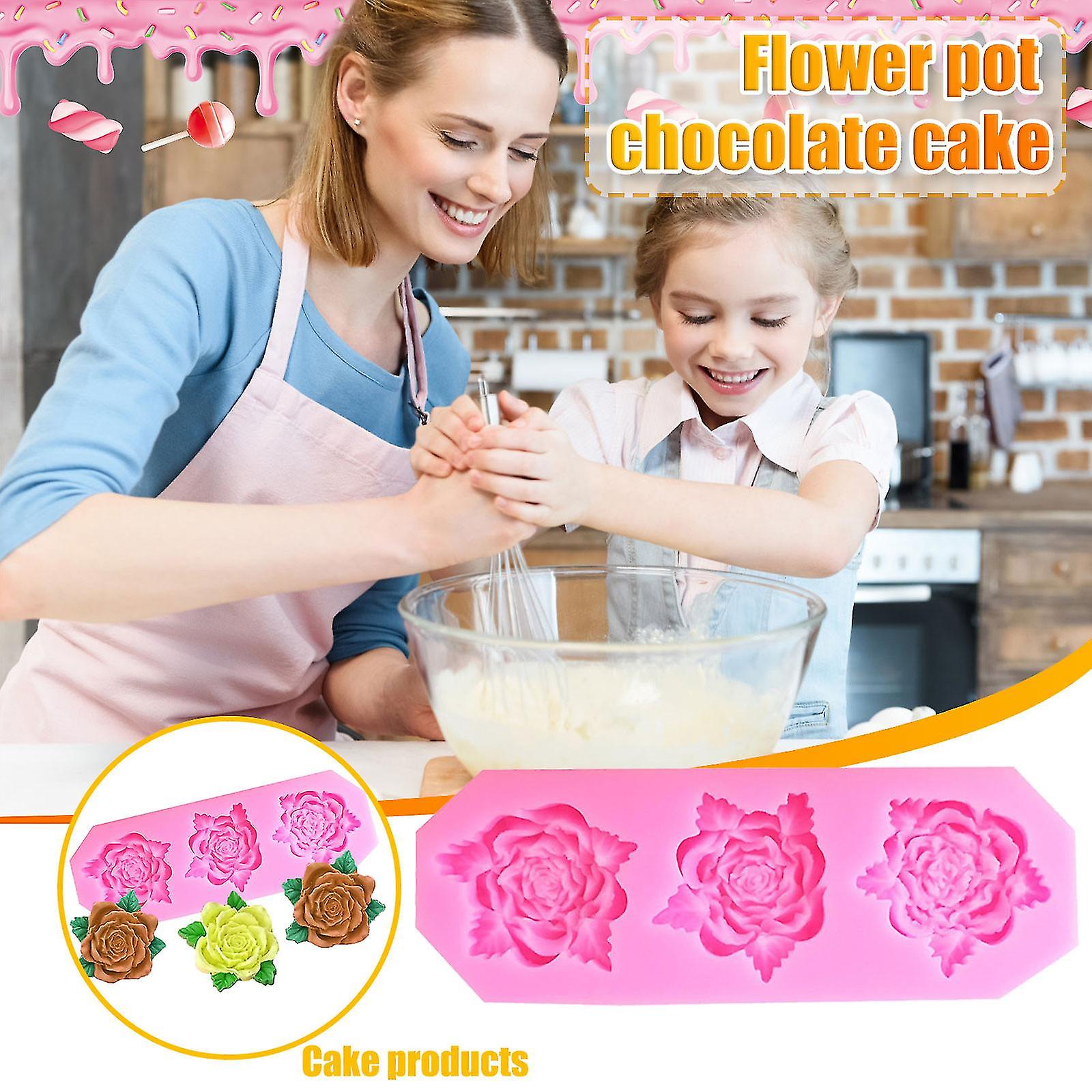 3 Roses Flowers Roses With Leaves Fondant Silicone Mold Baking Cake Decoration