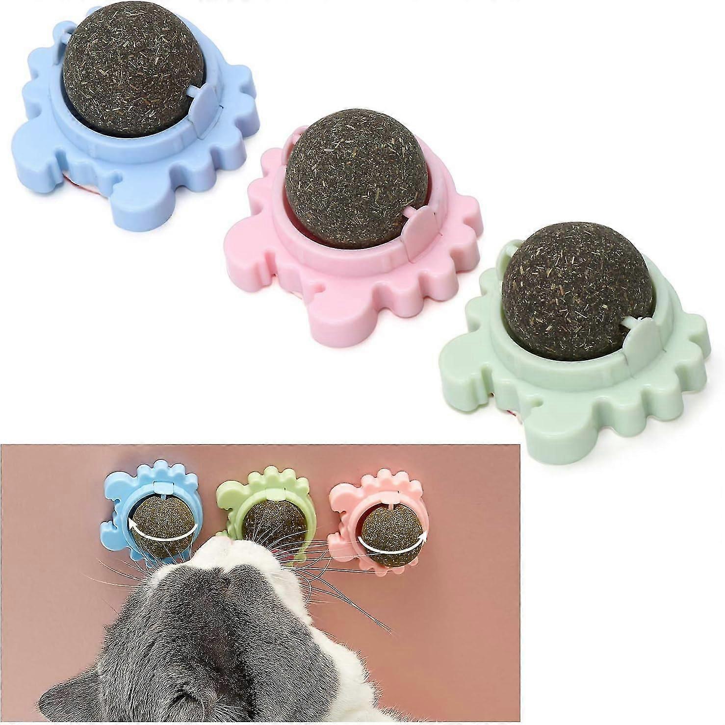 3 Pack Catmint Catnip Balls, Rotatable Cat Edible Balls, Cat Teeth Cleaning Interactive Toy