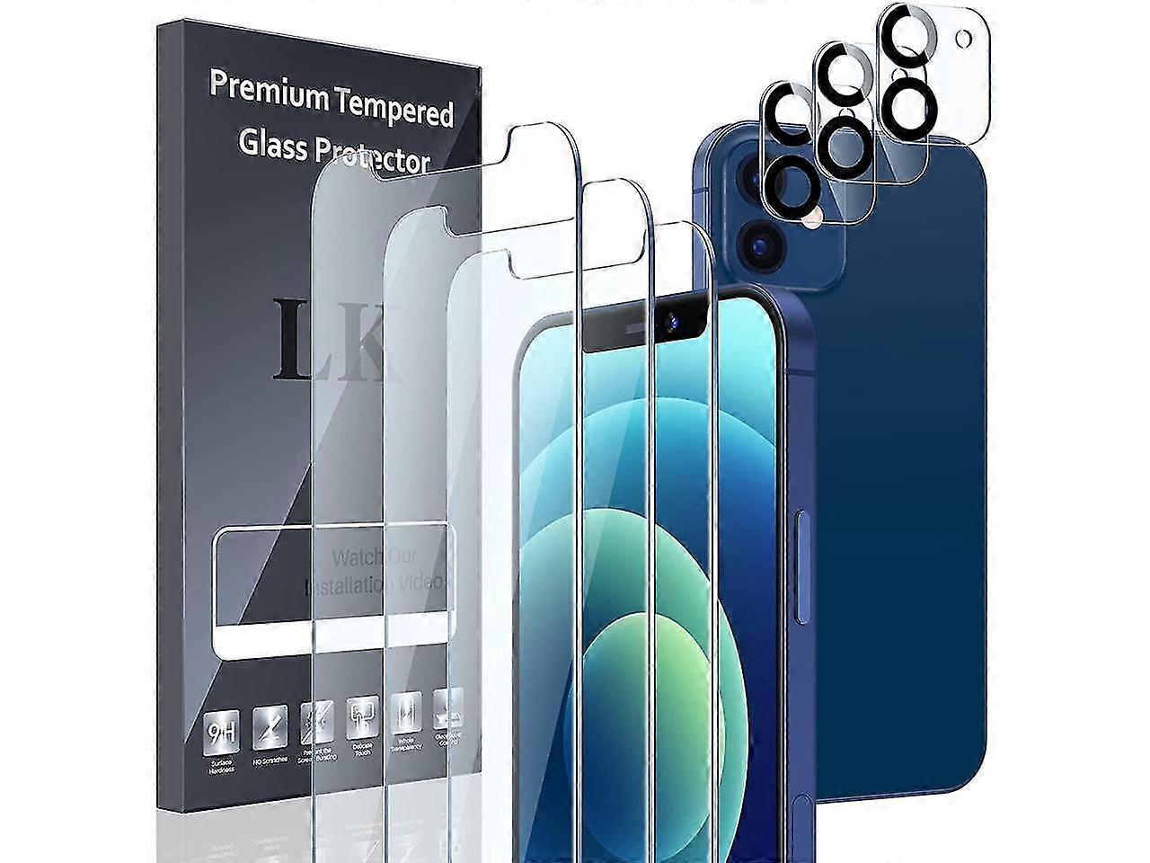 3 Pack Tempered Glass Screen Protector Compatible With Iphone 12 6.1 Inch With 3 Pack Camera Lens Protector, [9h Hardness] [scratch Resistant]