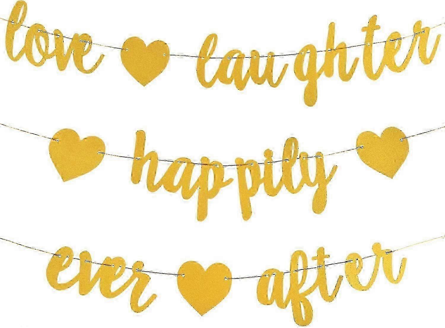 3 Pack Gold Glitter Love Laughter and Happiness Forever Banners - Engagement Party Decorations