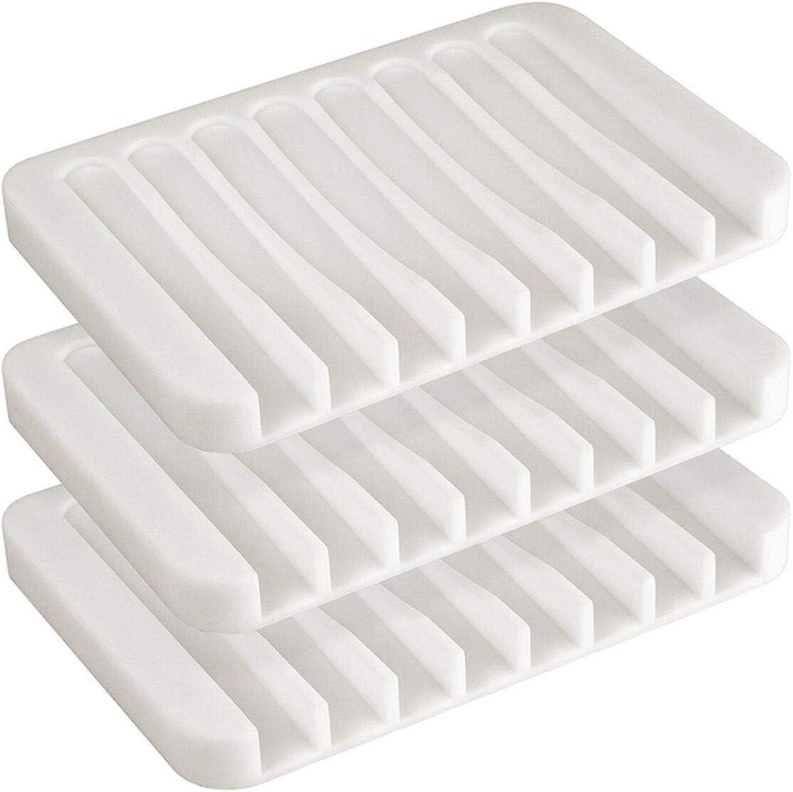 3-Pack Silicone Soap Dish with Waterfall for Bathroom or Kitchen White