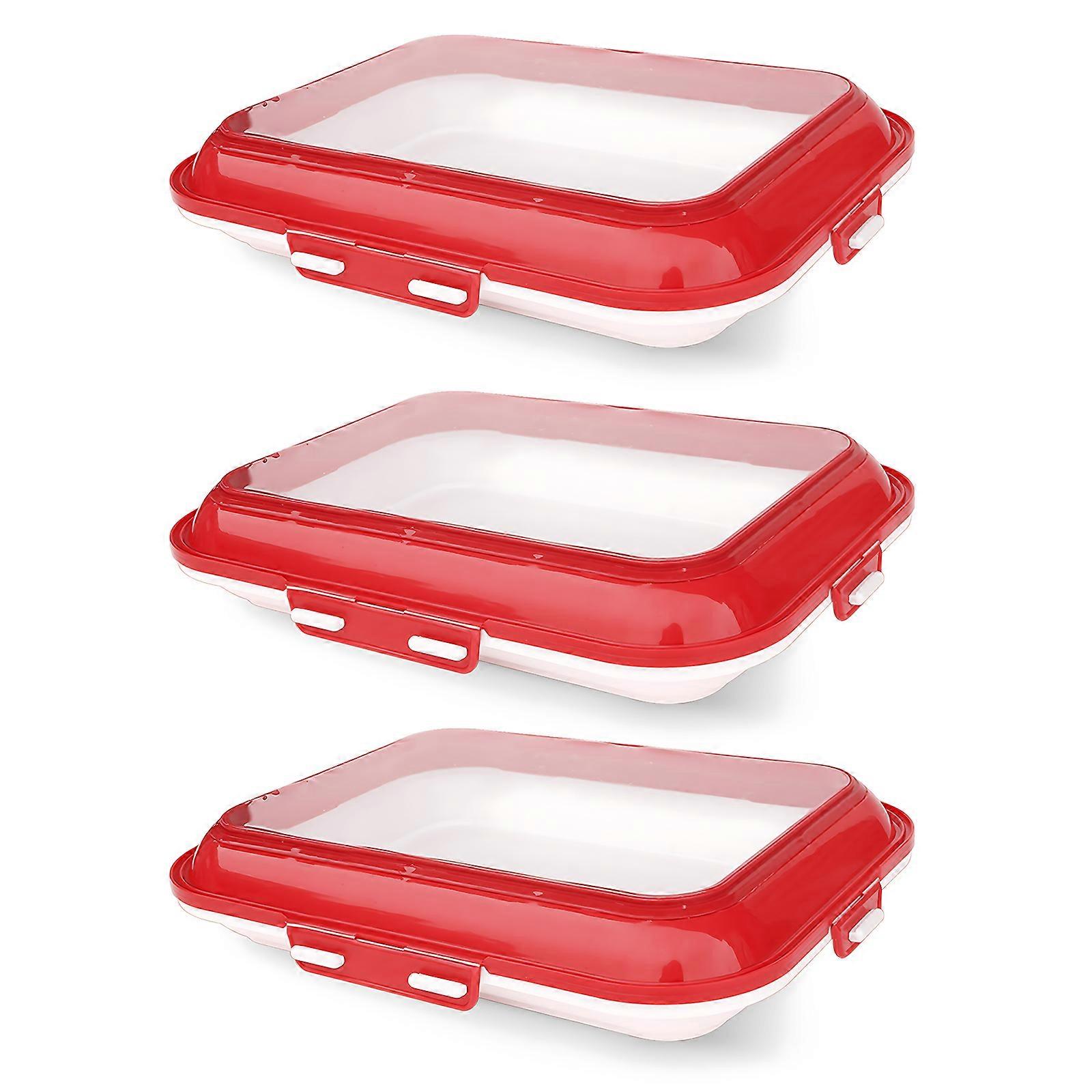 3 Pack Stackable Food Storage Trays 310x210x52mm with Stretch Cover