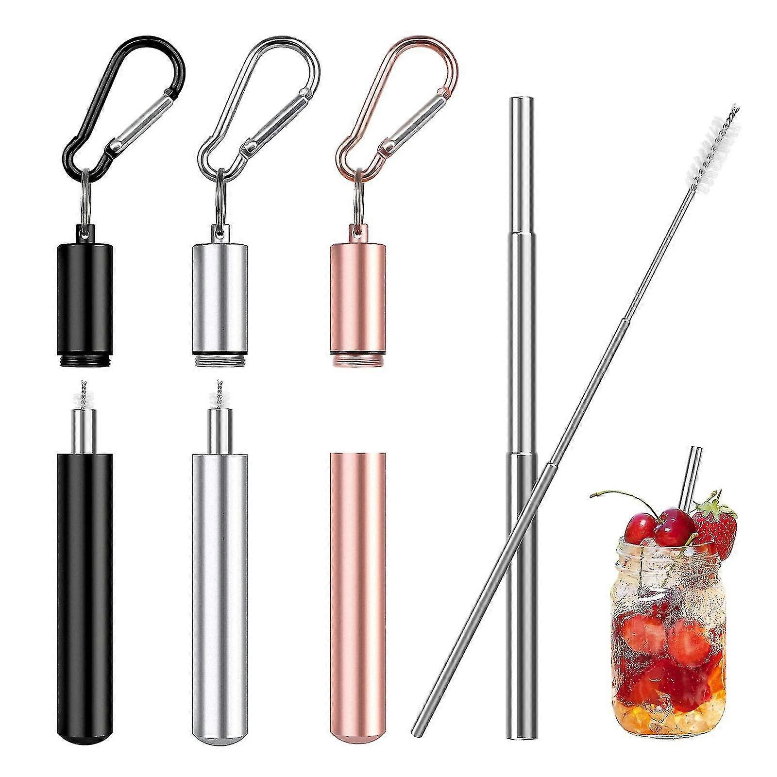 3packs Stainless Steel Straw, Telescopic Reusable Straws 22.5cm Collapsible Eco-friendly Straws With 3 Telescopic3packs Stainless Steel Straw, Telesco