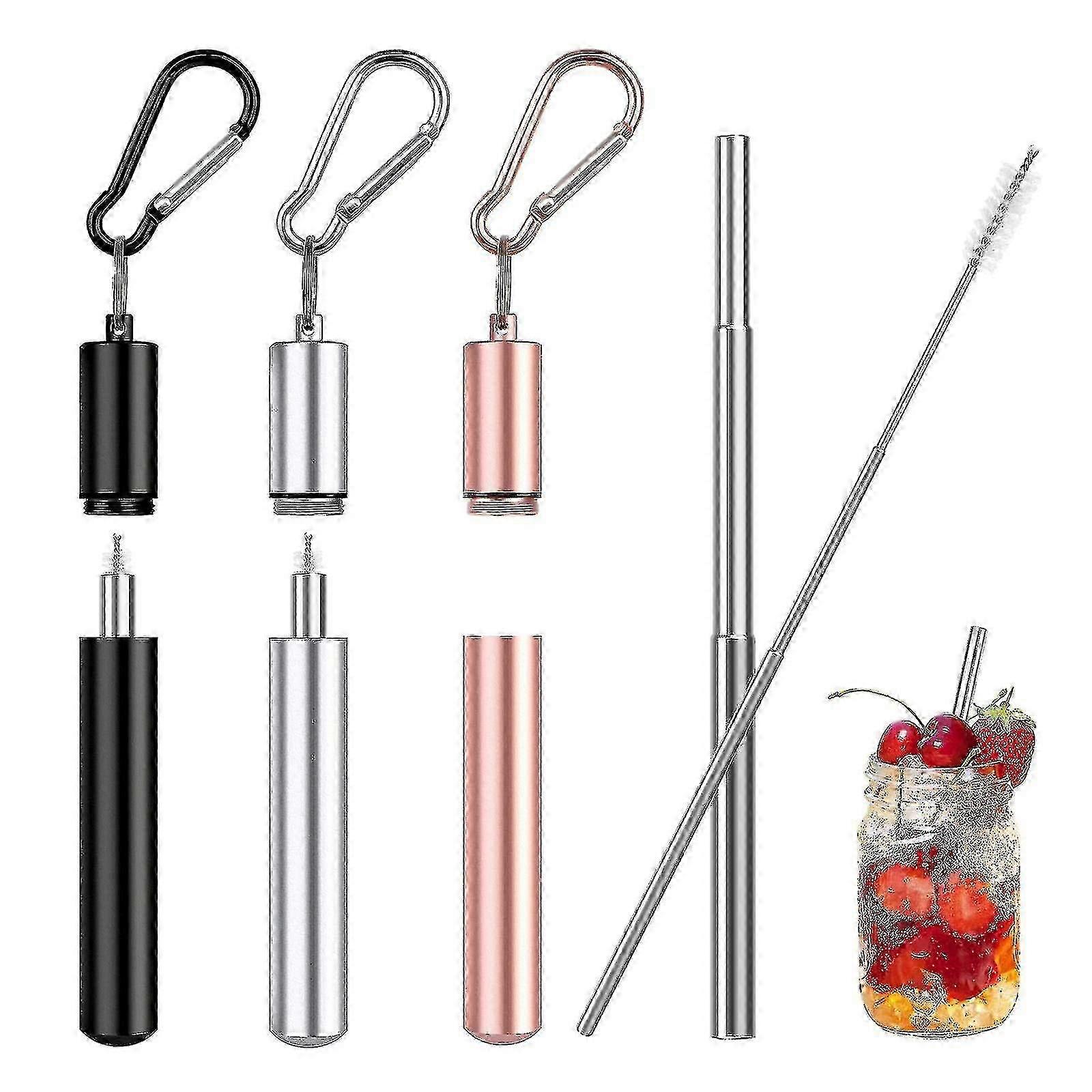 3packs Stainless Steel Straw, Telescopic Reusable Straws 22.5cm Collapsible Eco-friendly Straws With 3 Telescopic