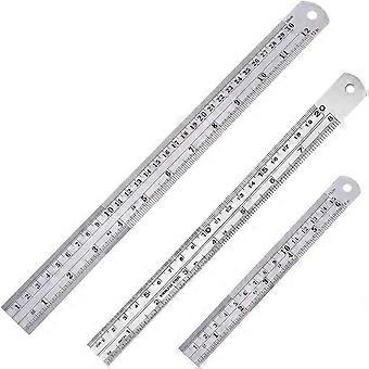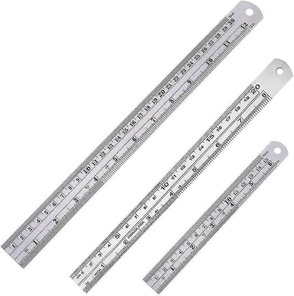 3-Pack Stainless Steel Rulers30cm(12")+20cm(8")+15cm(6") Metal Ruler Band Conversion Chart Perfect Ruler for Easy Measurement