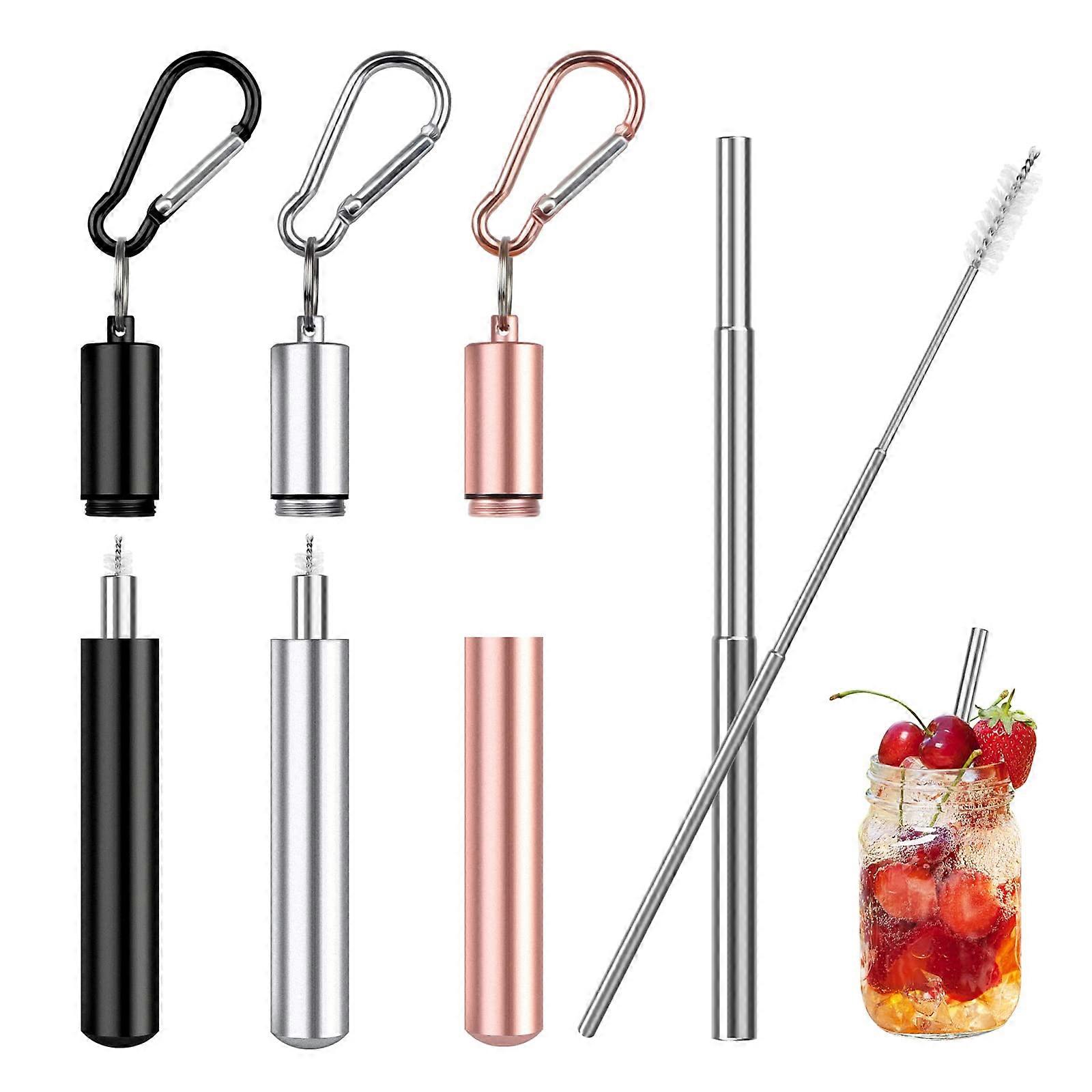 3Packs Stainless Steel Straw, Telescopic Reusable Straws 22.5cm Collapsible Eco-Friendly Straws with 3 Telescopic