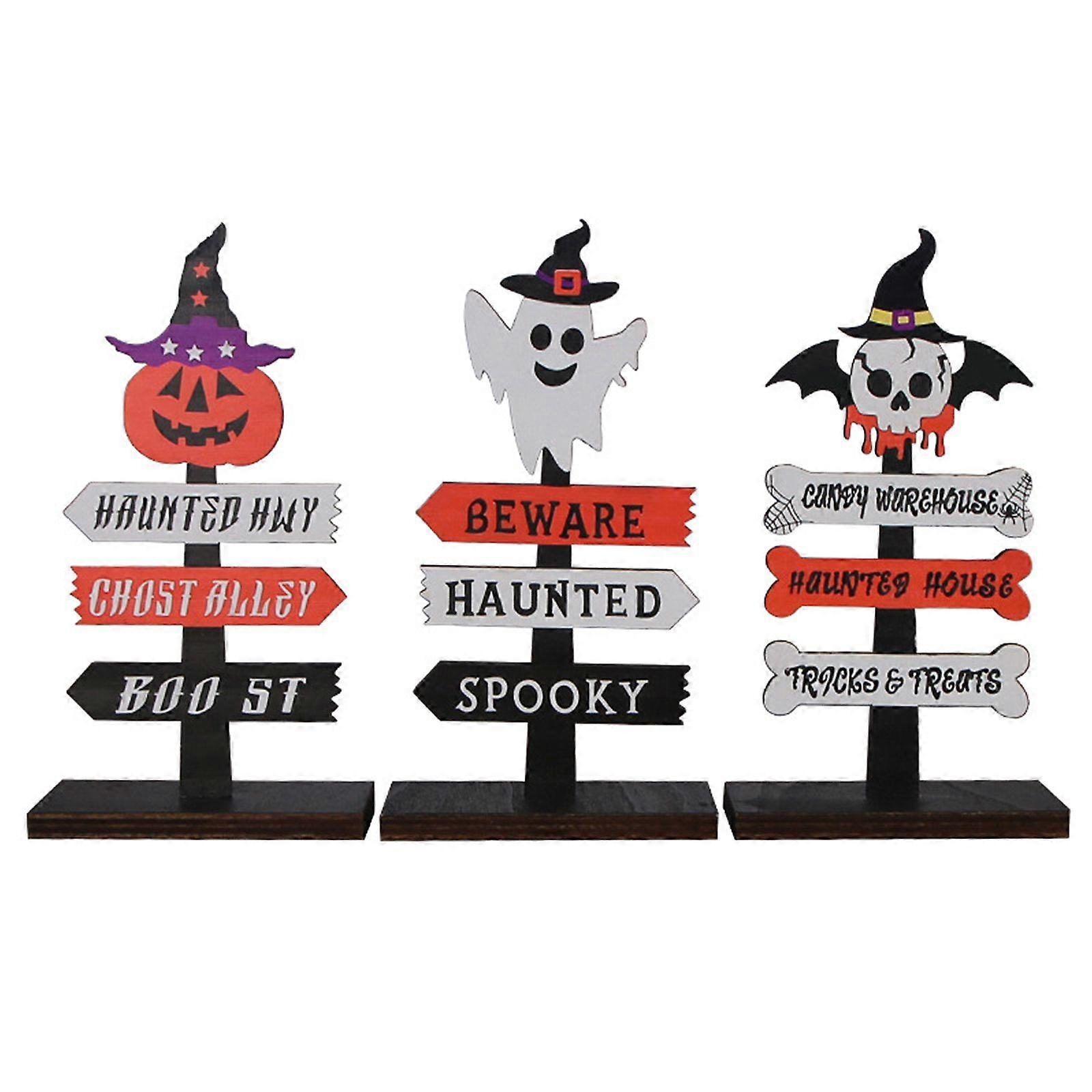 3 Pack Halloween Table Sign Rustic Wooden Tombstone Topper Centerpieces Decor Party
