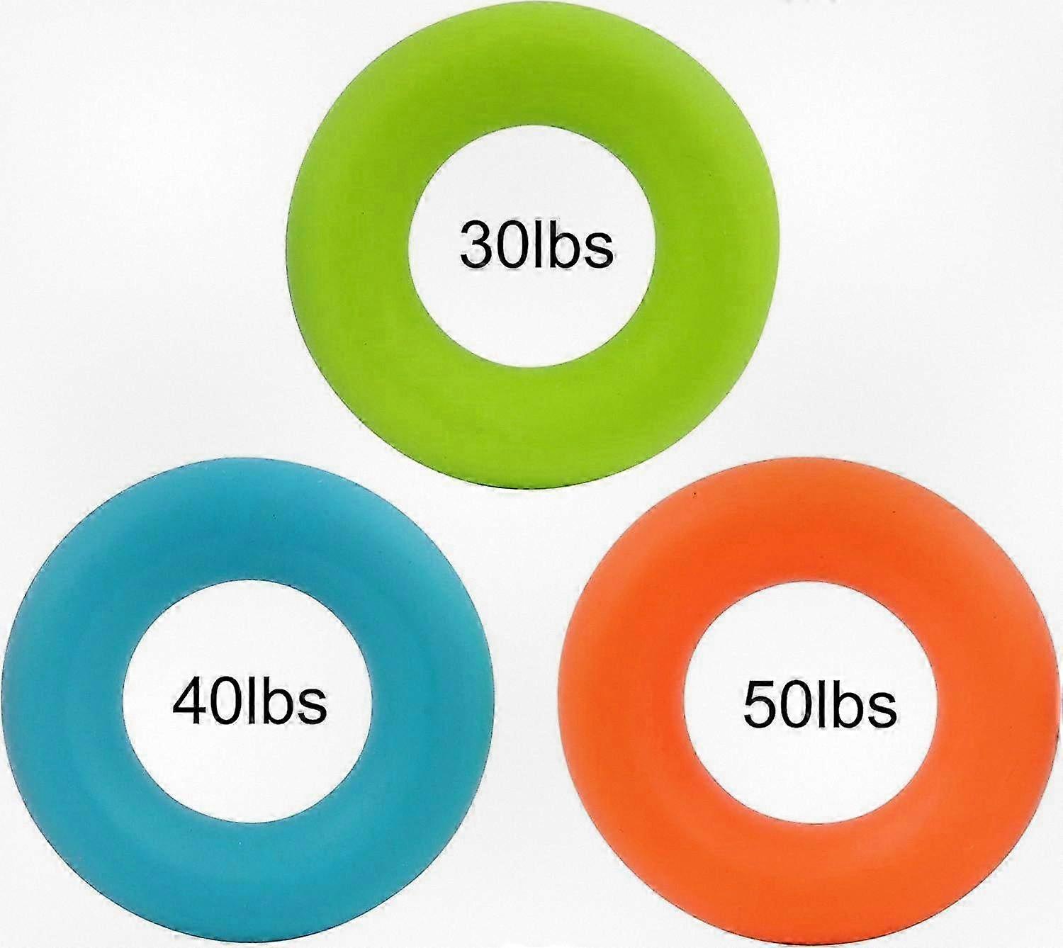 3-Pack Hand Grip Strengthener Rings, Finger and Forearm Trainer for Exercise, Rock Climbing, Strength Workout - 30/40/50 Lbs