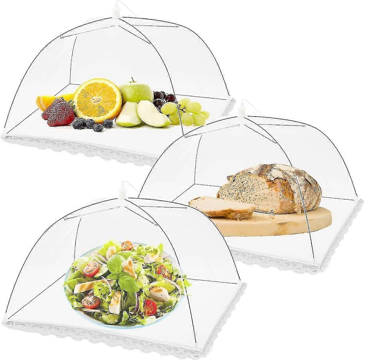 (3pack) Pop-up Picnic Food Tent Covers, 17x17inch Foldable Mesh Screen Food Covers Compatible Outdoors, Reusable Food Cover Net Keep Out Flies, Mosqui