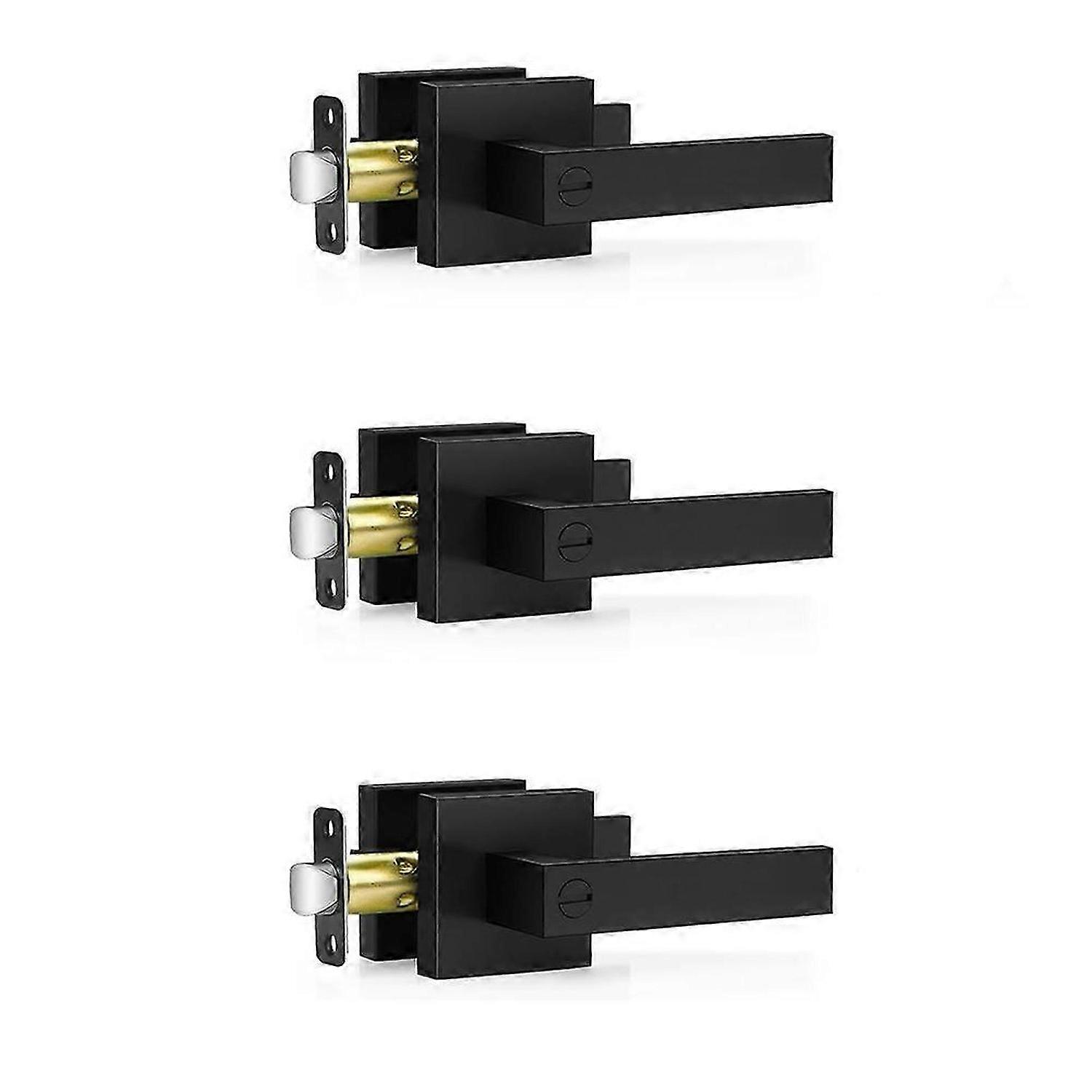 3 Pack Matte Black Door Handles, Keyless Interior Door Knobs, Privacy Door Lever Locksets for Bedroo