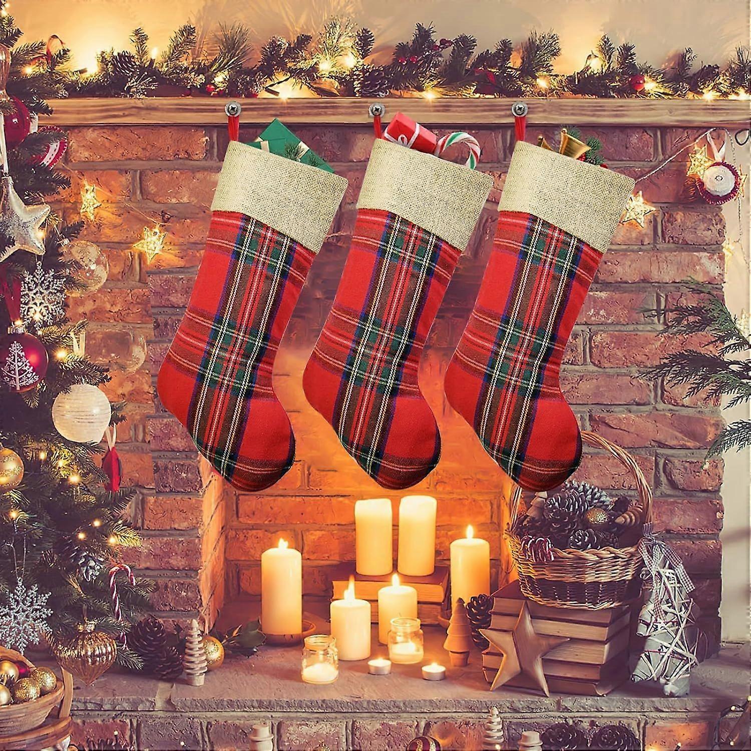 3 Pack Red Vintage Christmas Decorations Stockings 19 Inches Large, Traditional