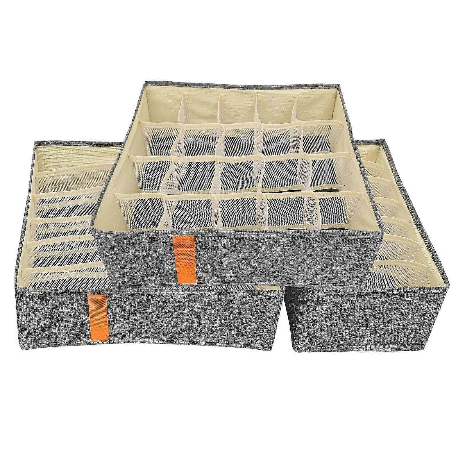 3-Pack Underwear & Sock Drawer Organizer, 32x32x11cm, Dark Grey