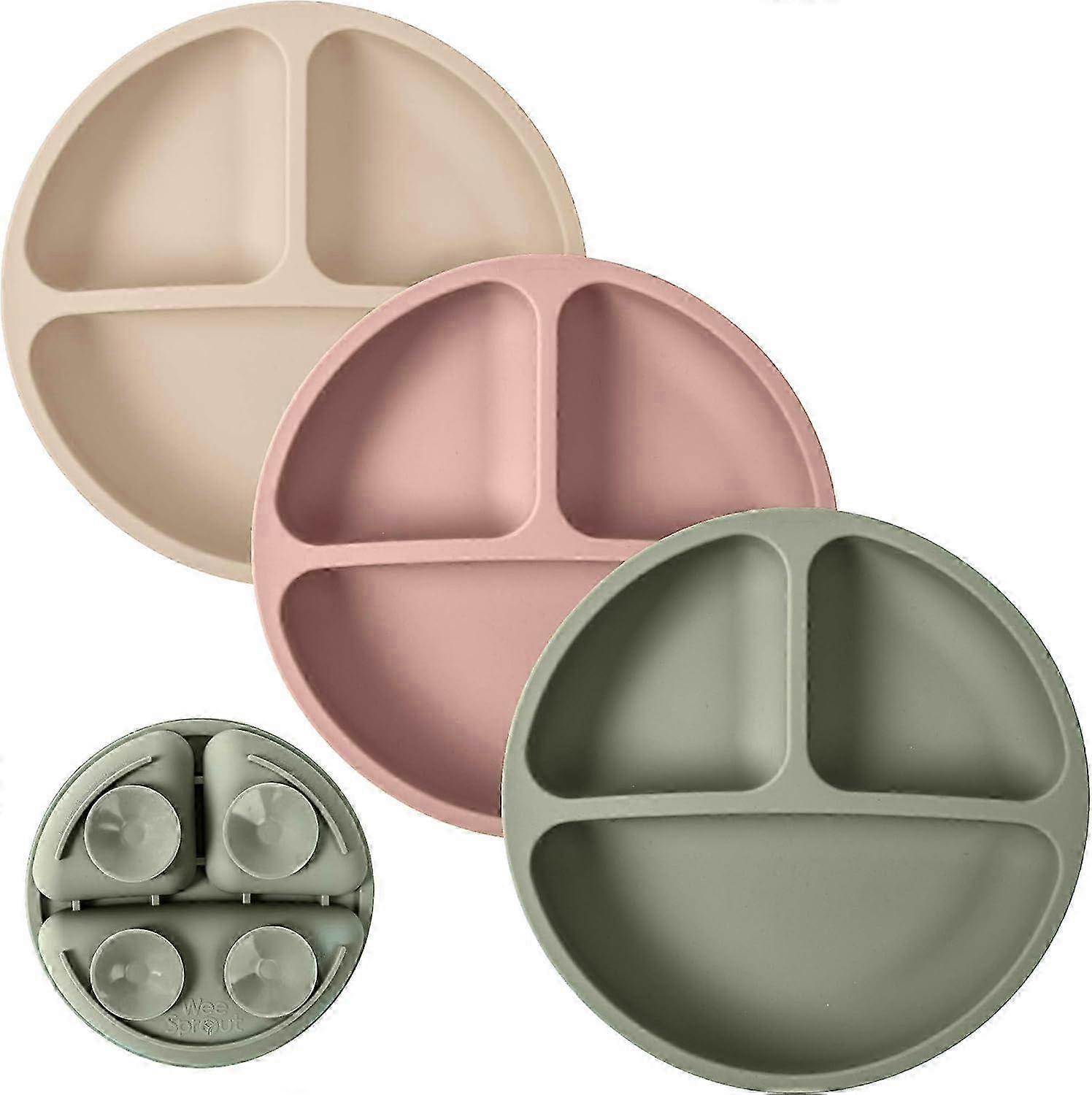 3 Pack Suction Plates for Babies & Toddlers - 100% Silicone, Plates Stay Put with Suction Feature, Divided Design for Picky Eaters, Microwave & Dishwa