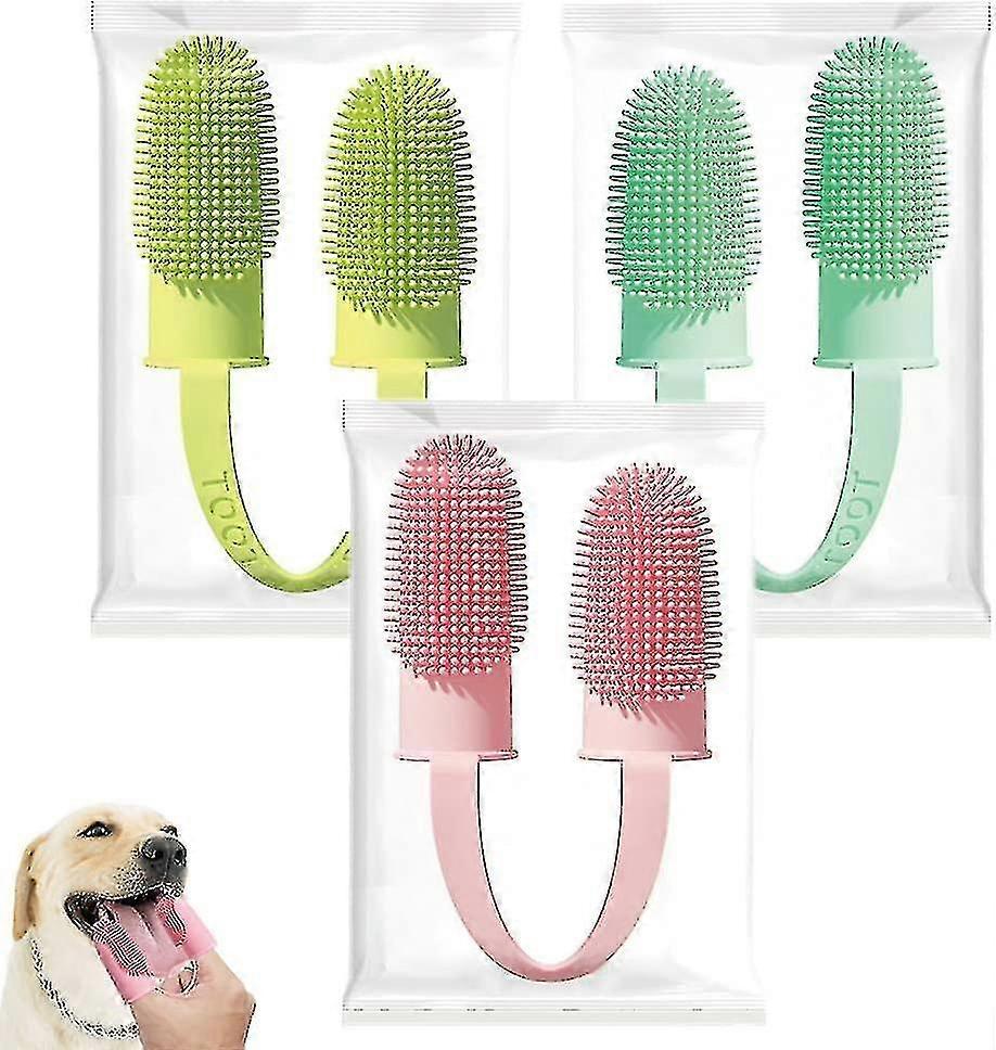 3 Pack Dog Toothbrush,2 Heads Soft Pet Finger Toothbrush For Dog Cat For Easy Teeth Cleaning Tw