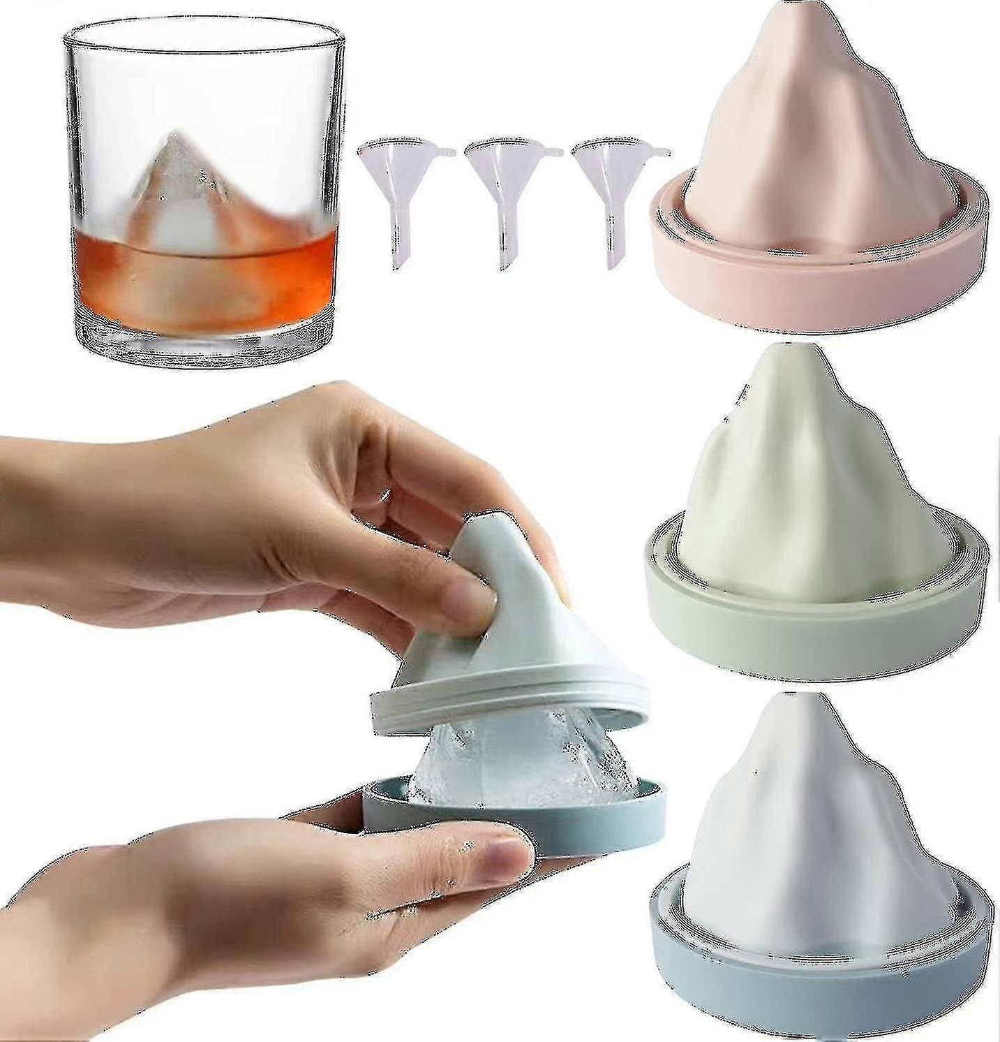 3 Pack Snow Mountain Ice Cube Tray Silicone Ice Ball Maker Whiskey Ice Mold With Funnel