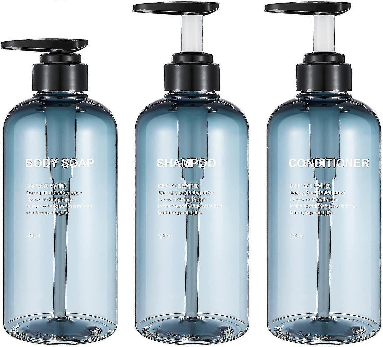 3 Pack 500ml Empty Shampoo Bottles, 17oz Blue Plastic Bottles With Pump Soap Dispenser Bottle For Bathroom