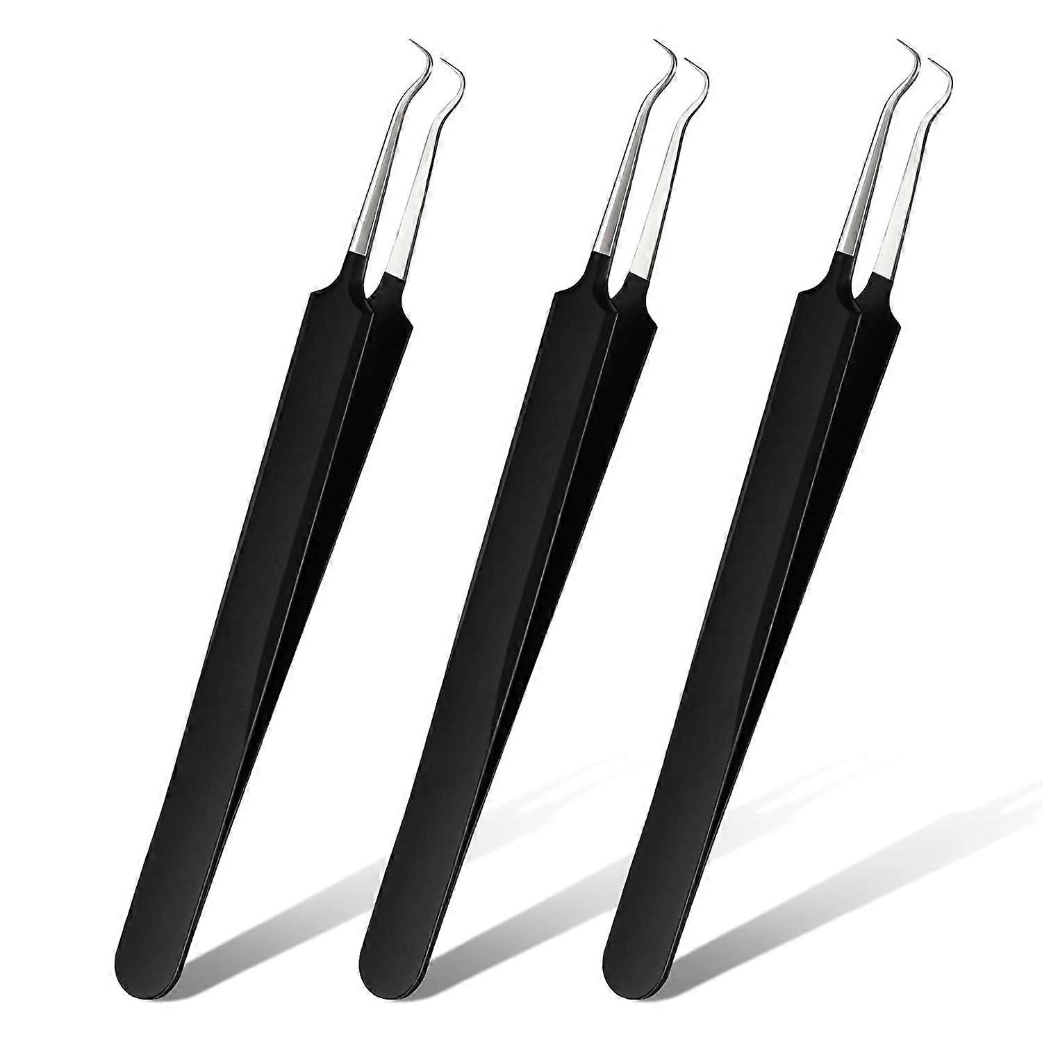 3 Pieces Blackhead Tweezers Acne Blemish Stainless Steel Blemish Extractor Tool for Remove Blackhead Acne Whitehead Pimple Bend Curved Tweezer Skin Bl